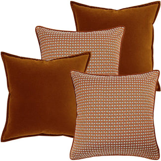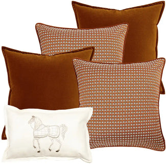Rust Velvet & Grid Pattern Cushions with Horse Accent