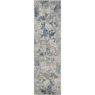 سجادة طويلة بنقشة ضبابية باهتة وقاعدة مخططة باللون الرمادي والأزرق