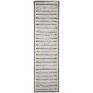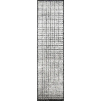 سجادة طويلة باللون الرمادي بخطوط متعرجة ونمط ماسي