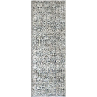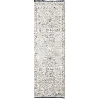 سجادة طويلة بنقشة تقليدية باهتة باللونين الرمادي والبيج