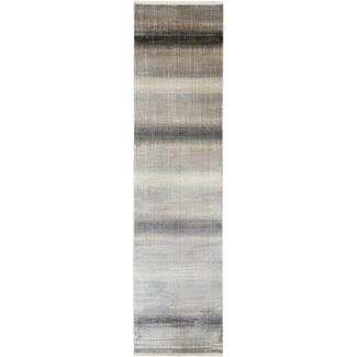 سجادة طويلة بخطوط ضيقة منقوشة باللون الرمادي والبيج
