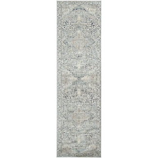سجادة طويلة بتصميم تقليدي باهت بنقشة ميدالية باللون الأزرق الرمادي