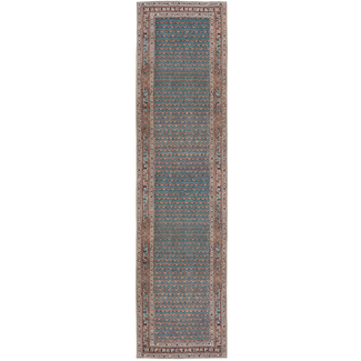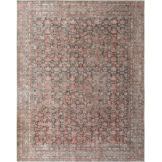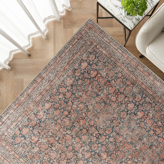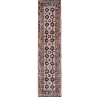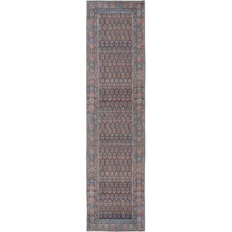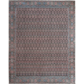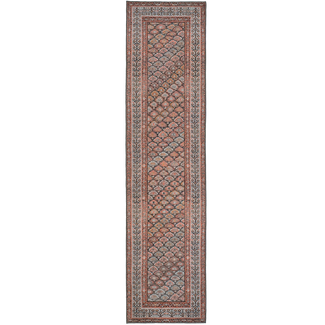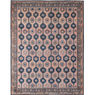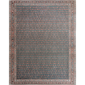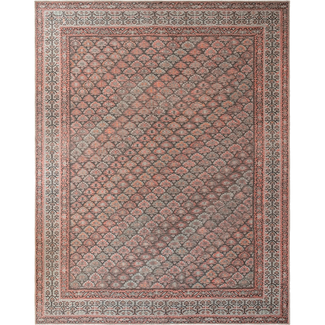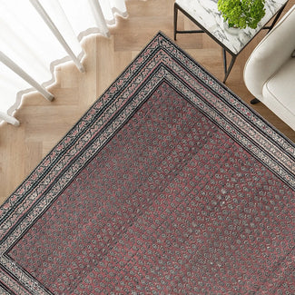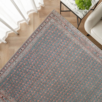 سجادة بنقش تقليدي باللون الأزرق الصخري والأحمر الطوبي