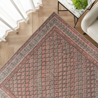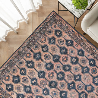 سجادة تقليدية بنقشة بلاط باللون الوردي والأزرق