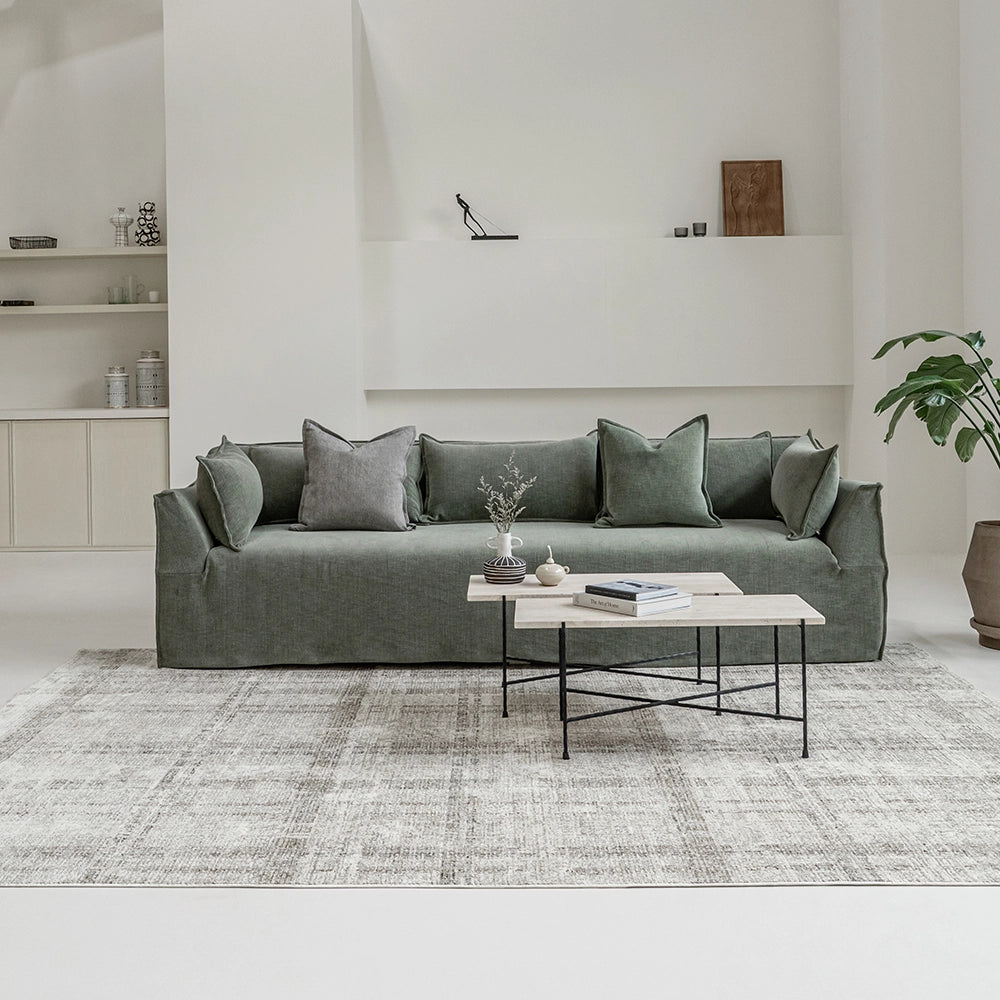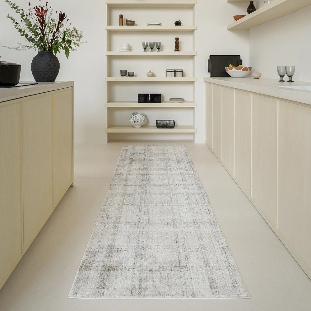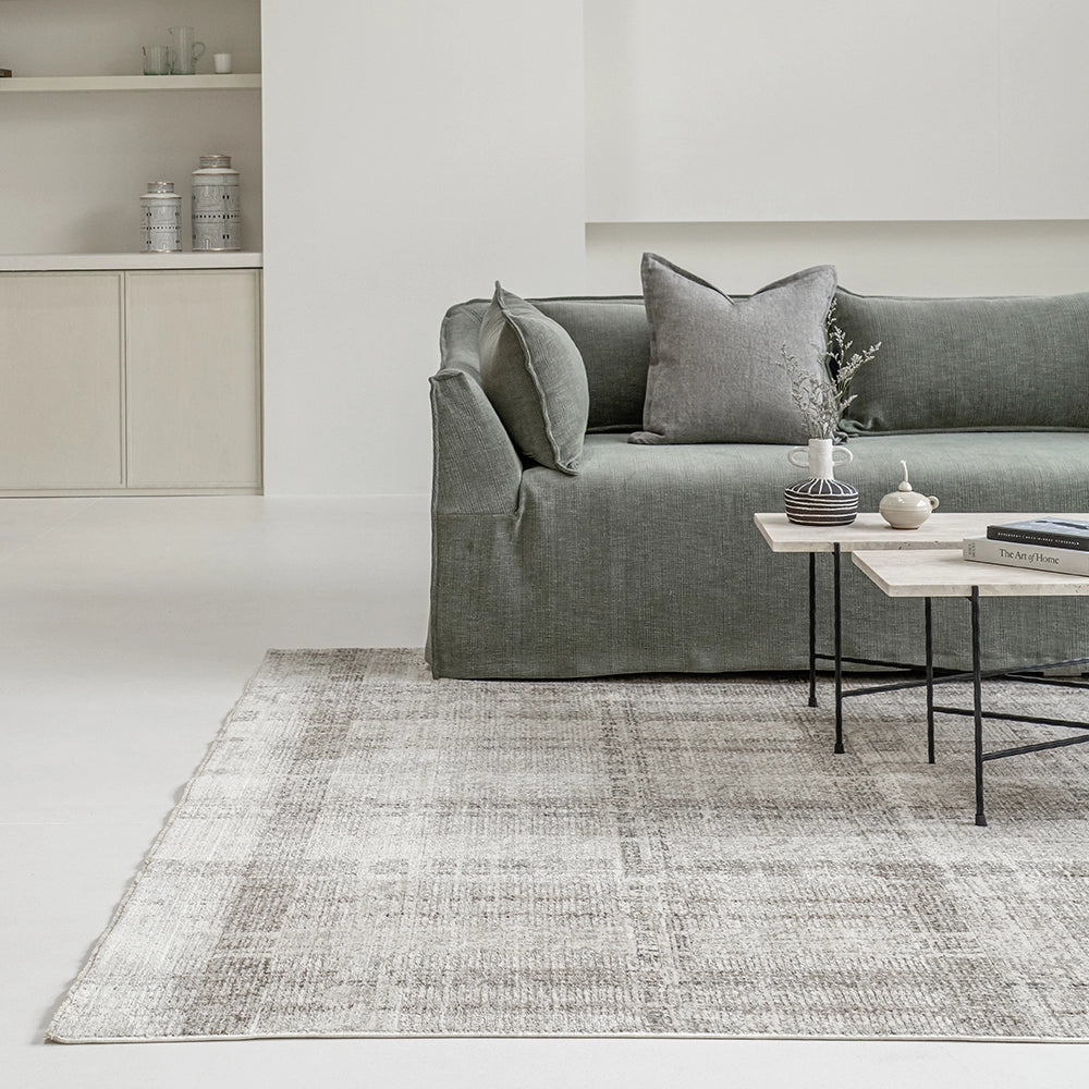 قاعدة بلون عاجي ناعم مع درجات الرمادي الحجري والرملي ولمسة خفيفة من الأخضر الميرمي، لتمنحك تأثيرًا لطيفًا يشبه نقشة المربعات الكلاسيكية. يضيف سطحها الناعم اللامع لمسة من الدفء والملمس الرقيق لأي غرفة.