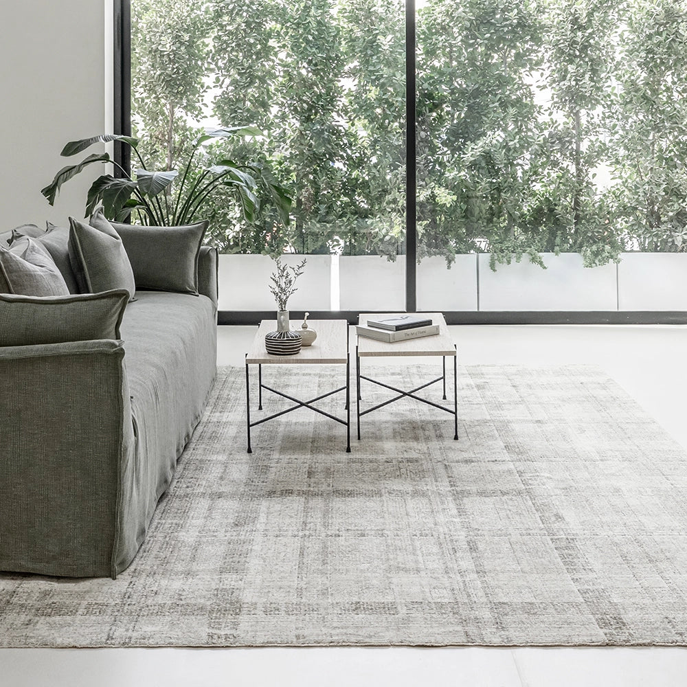 بلون محايد، تناسب هذه السجادة المربعة أي ديكور.