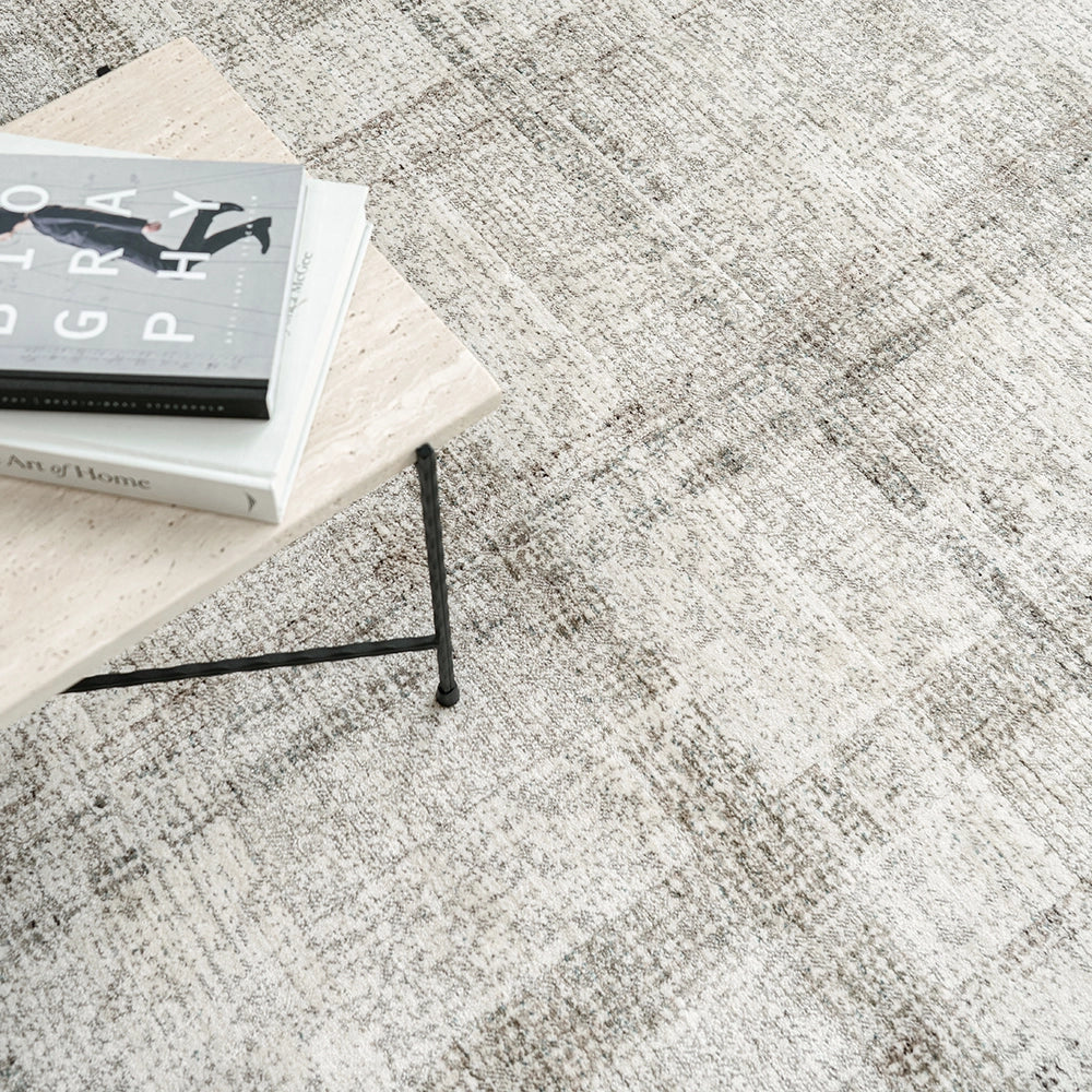 بلون محايد، تناسب هذه السجادة المربعة أي ديكور.