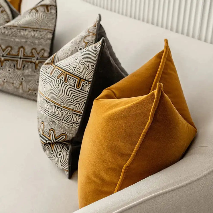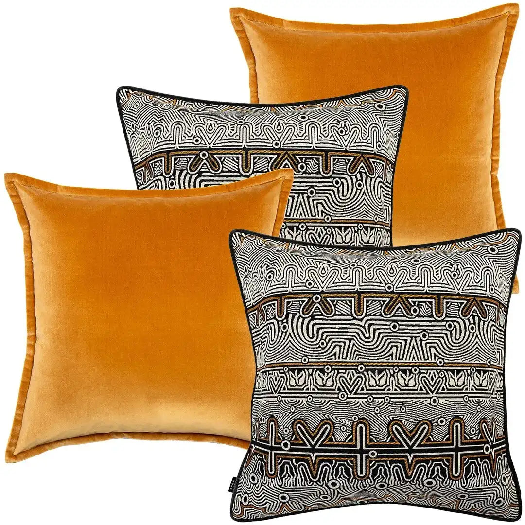 التصميم: وسادتان من المخمل باللون البرتقالي ووسادتان بنمط مميز