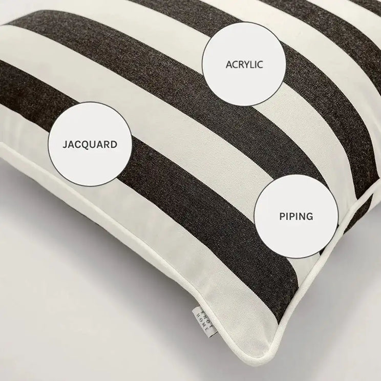 جهز منزلك لفصل الصيف مع هذه الوسادة المخططة. سواء كنت تستخدمها مع أريكة داخلية أو منطقة جلوس خارجية في الفناء، ستوفر هذه الوسادة باللونين الأسود والأبيض مساحة ترحيب لضيوفك.