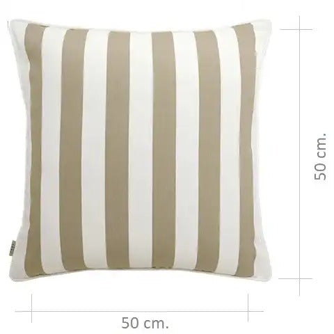 أضف أجواء الشاطئ إلى منزلك مع هذه الوسادة باللون البيج الرملي. الوسادة المخططة مناسبة للاستخدام في الداخل والخارج، لذلك ستبدو رائعة على سطح منزلك كما هي على أريكتك.