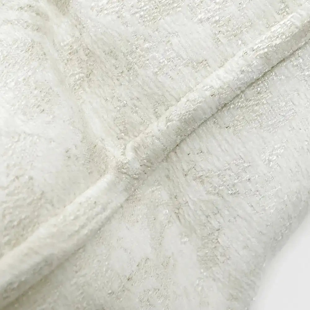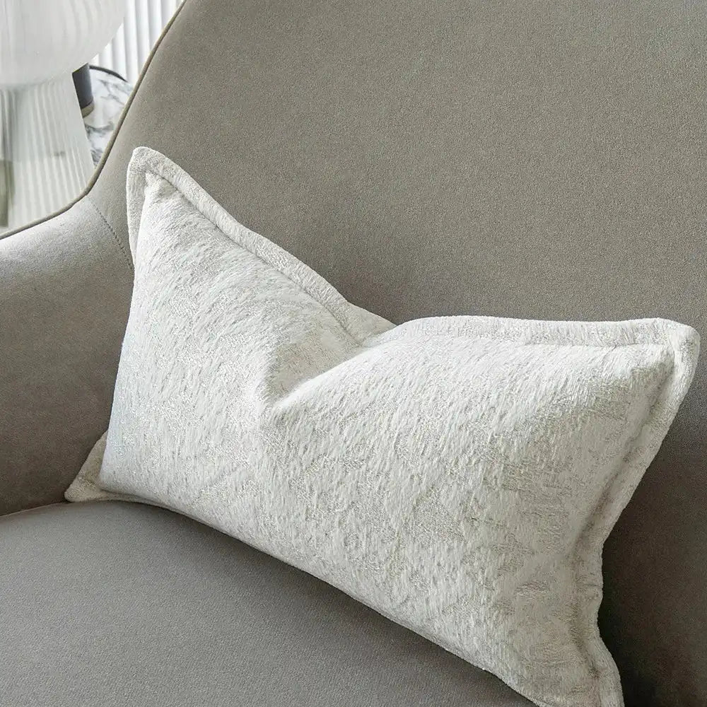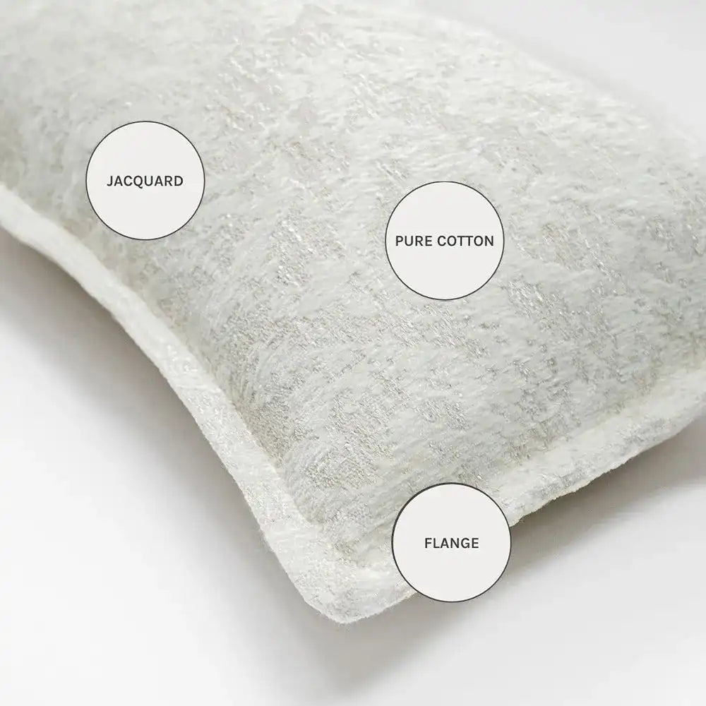 ارتقِ بزينة منزلك مع وسادتنا البيضاء الأنيقة، التي تعرض نمط جاكار أبيض ورمادي عصري. مصنوعة من قطن عالي الجودة، تتميز بلمسة ناعمة وفاخرة تضيف عمقًا لأي مكان.
