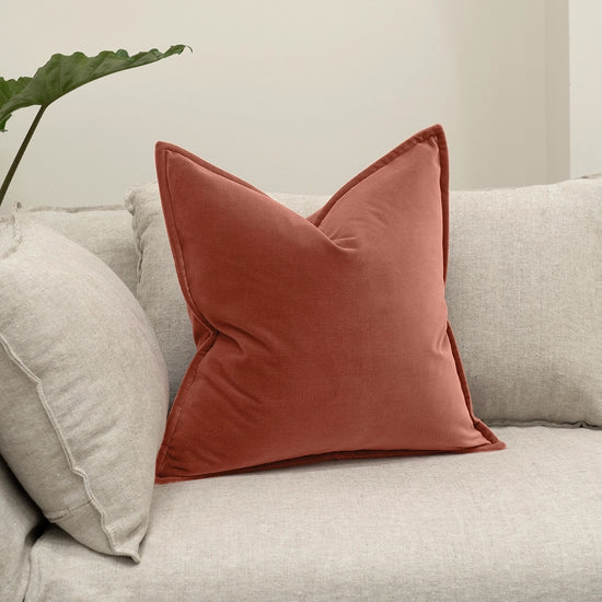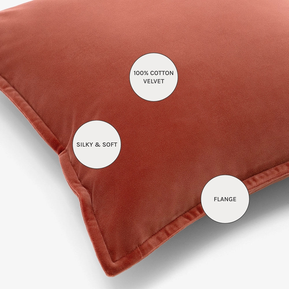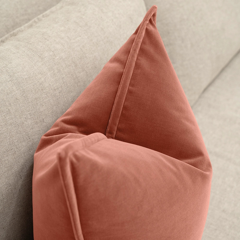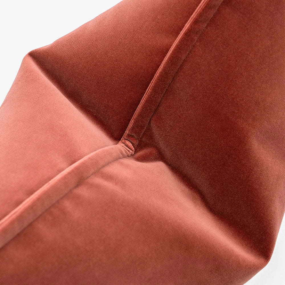 وسادة مخملية بلون وردي مبهج مصنوعة من القطن النقي مع ملمس ناعم وفخم وتمنحك الراحة والشعور بالأناقة