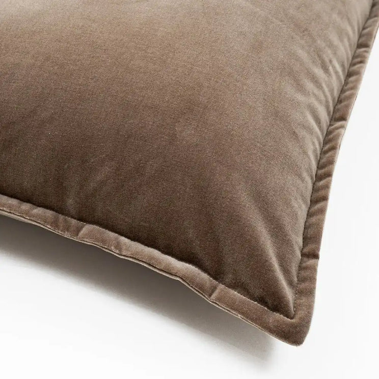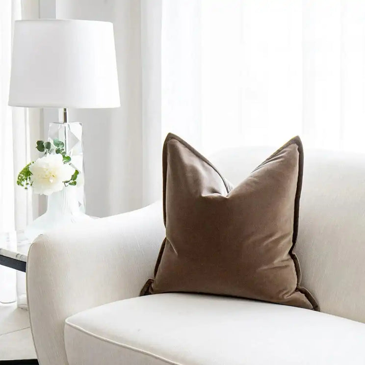 وسادة مخملية باللون البني تمنحك لمسة من التصميم العصري والكلاسيكي في آن واحد.