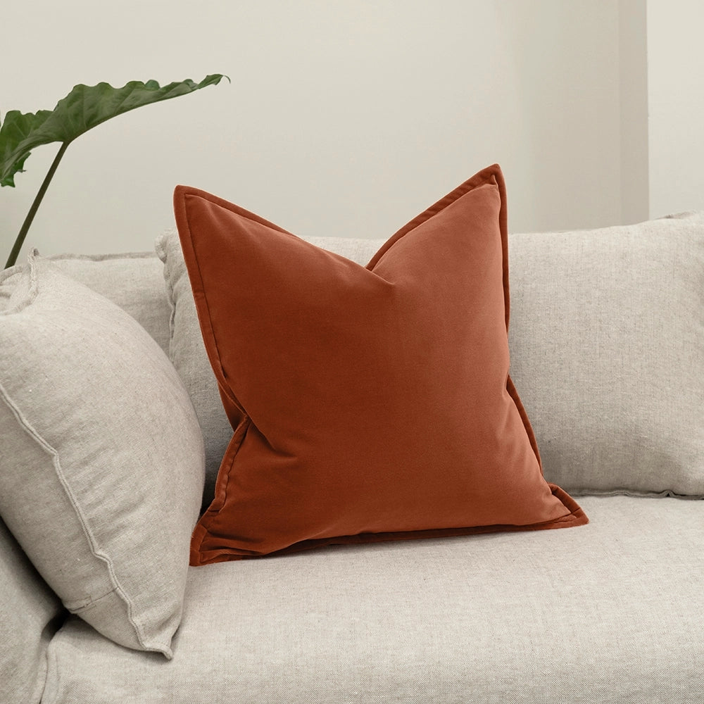 اضف المزيد من الدفء لديكورك مع هذه الوسادة المخملية بدرجة بني عميق. مصنوعة من قطن نقي بملمس ناعم وهي مثالية لتجديد غرفة معيشتك.