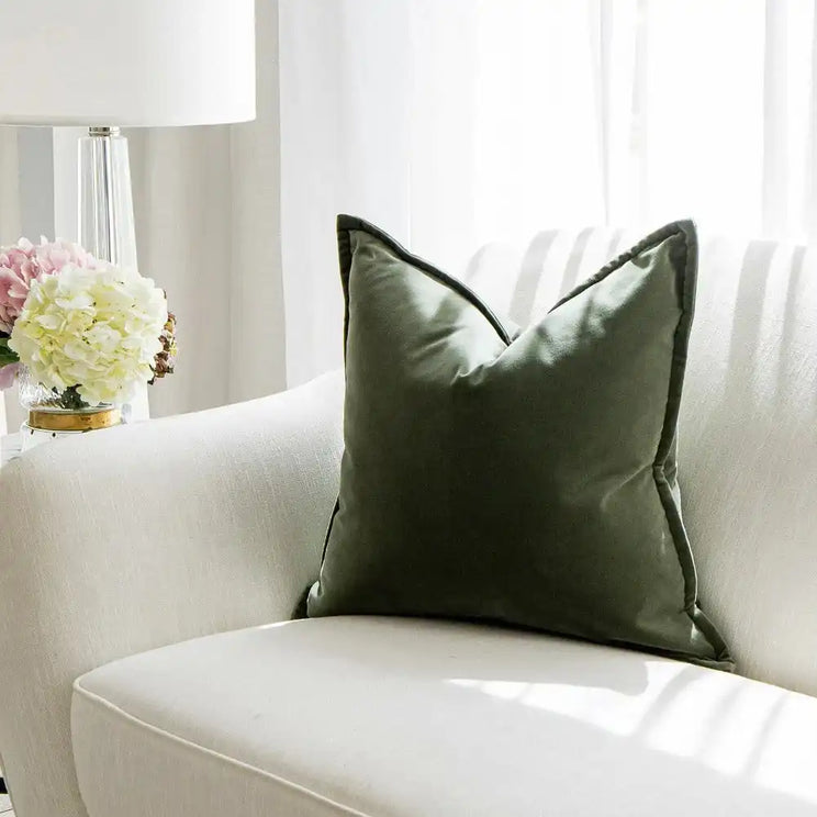 وسادة اليساندرا فوريست تأتي بدرجة فاخرة من اللون الأخضر الغامق والمخمل الناعم.