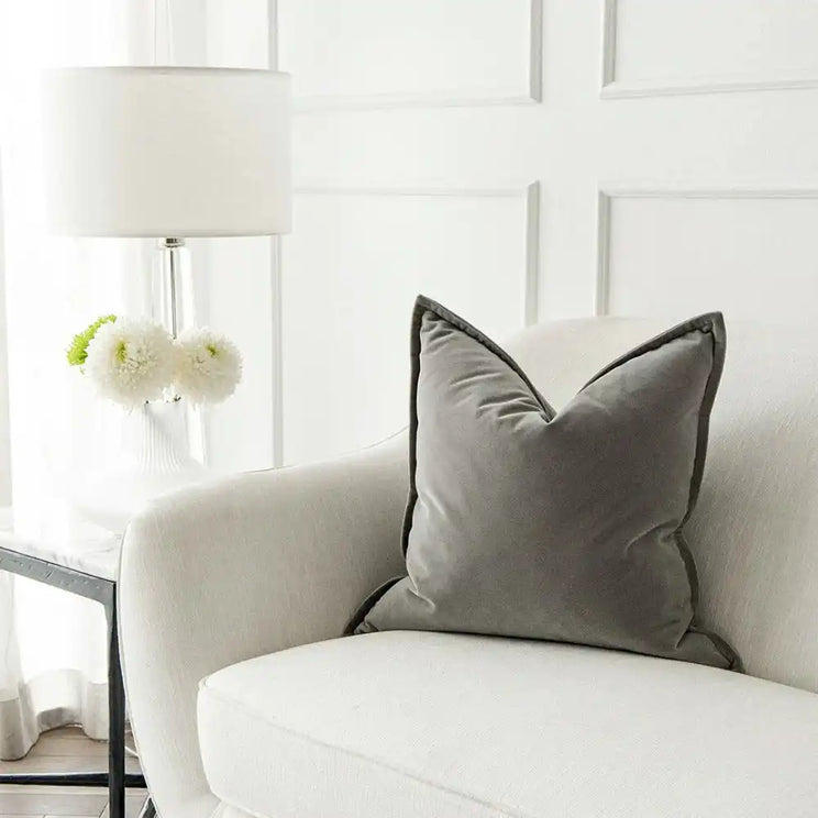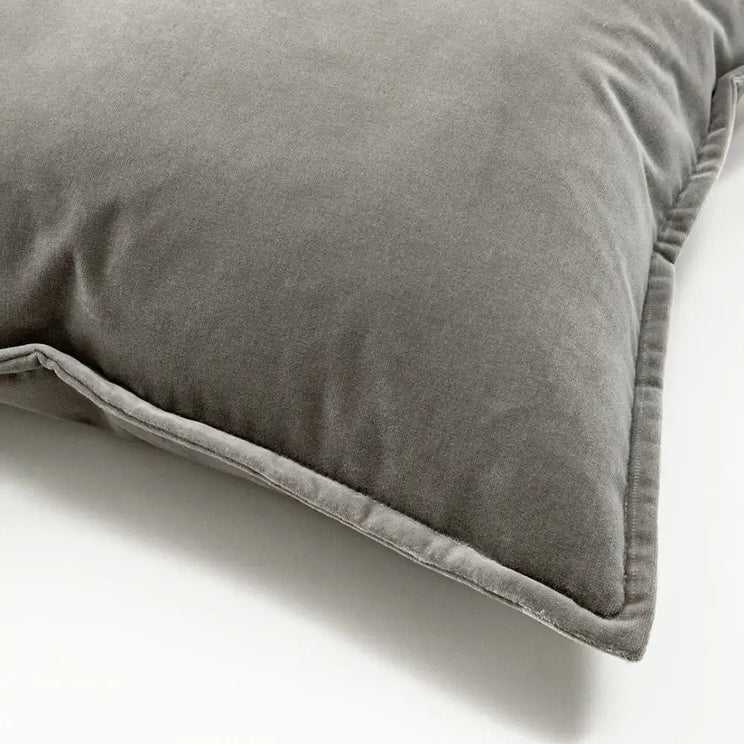 وسادة مخملية من القطن تأتي بلون رمادي فاخر وأنيق لإضافة لمسة من المظهر العصري إلى منزلك.