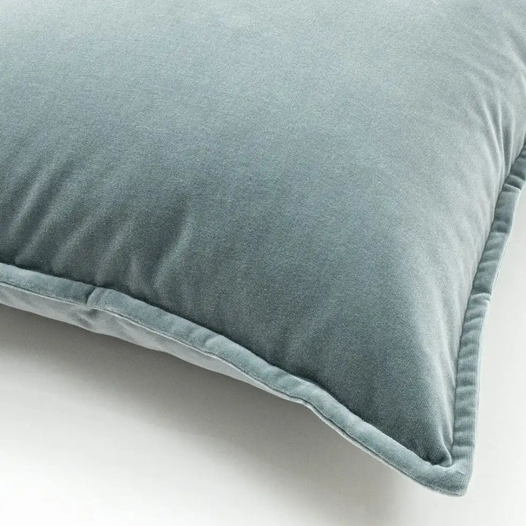 وسادة اليسندرا لوكاس فاخرة وفخمة وتأتي بلون أزرق باستيل مع حواف مدروزة وبارزة ونسيج ناعم.