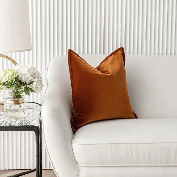 وسادة اليساندرا هي وسادة مخملية من اللون البرتقالي تأتي من نسيج ناعم لإضافة لمسة من الأناقة إلى مساحتك الداخلية.