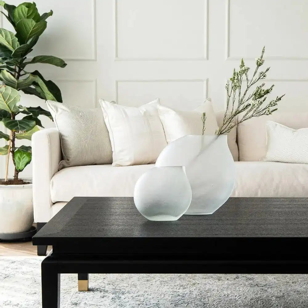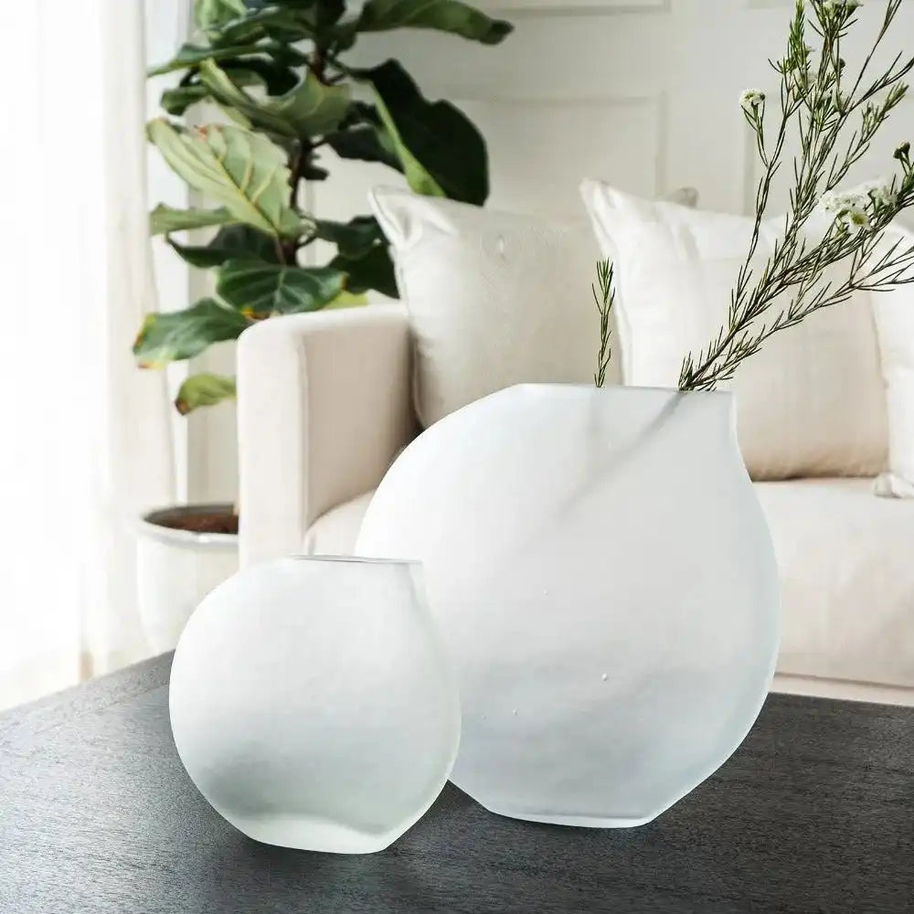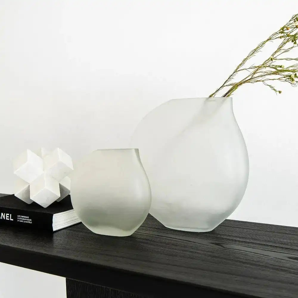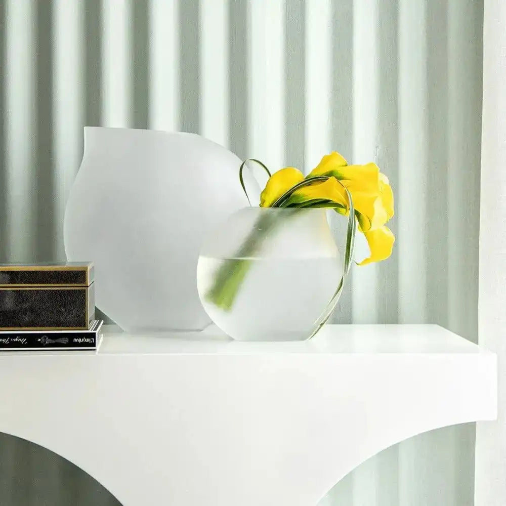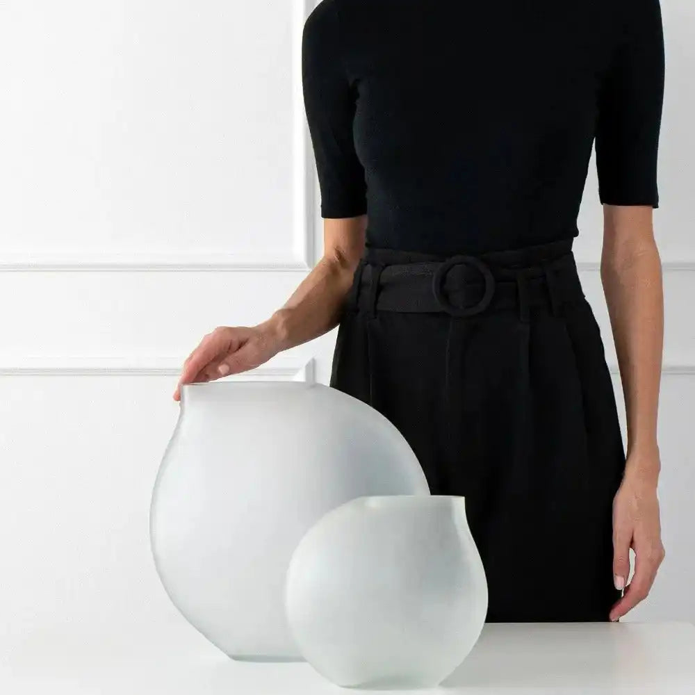 كل مزهرية في هذه المجموعة لها شكل مثير للاهتمام - تصميم يشبه الدمعة الموضوعة بزاوية قليلاً ستكمل أي تصميم داخلي.