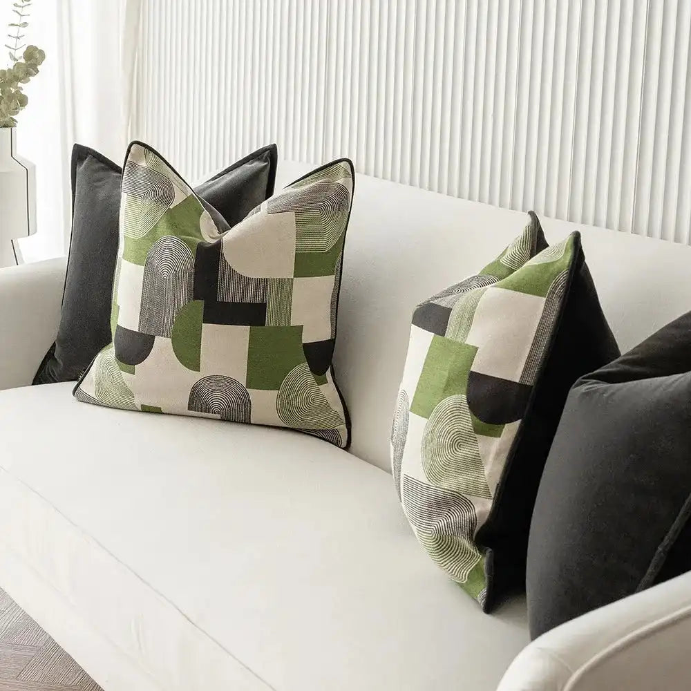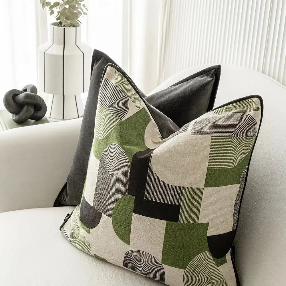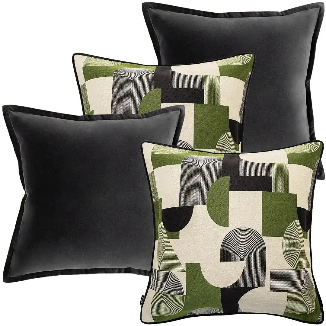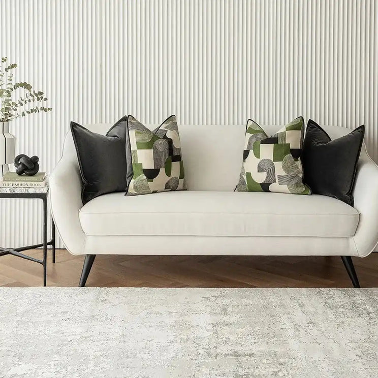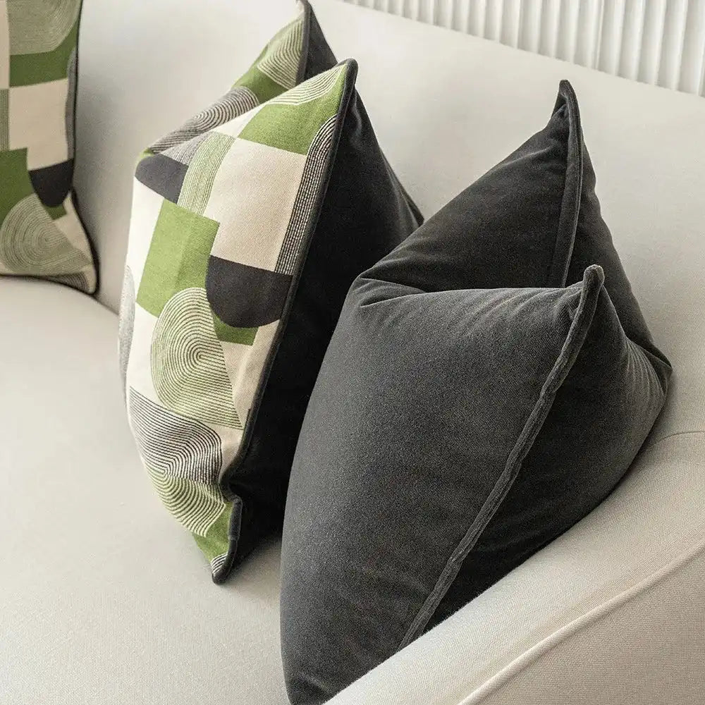 مجموعة انيش تأتي بتصميم بنمط هندسي مميز مع المخمل الالرمادي الداكن والمزيج بين اللون الأسود والأخضر الذي يضفي لمسة من الفخامة في أي مكان.