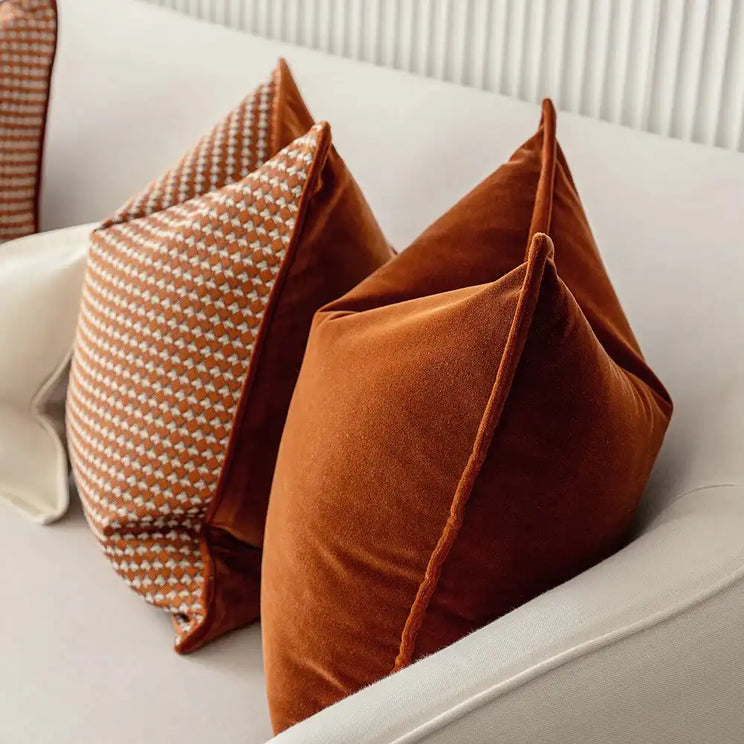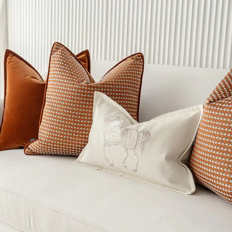 وسائد من المخمل الصدأ مع وسائد بنمط مميز مع تفاصيل الحصان