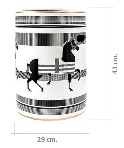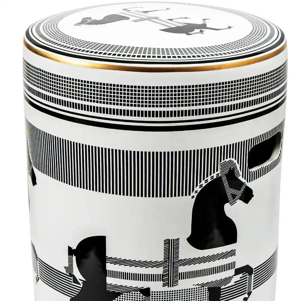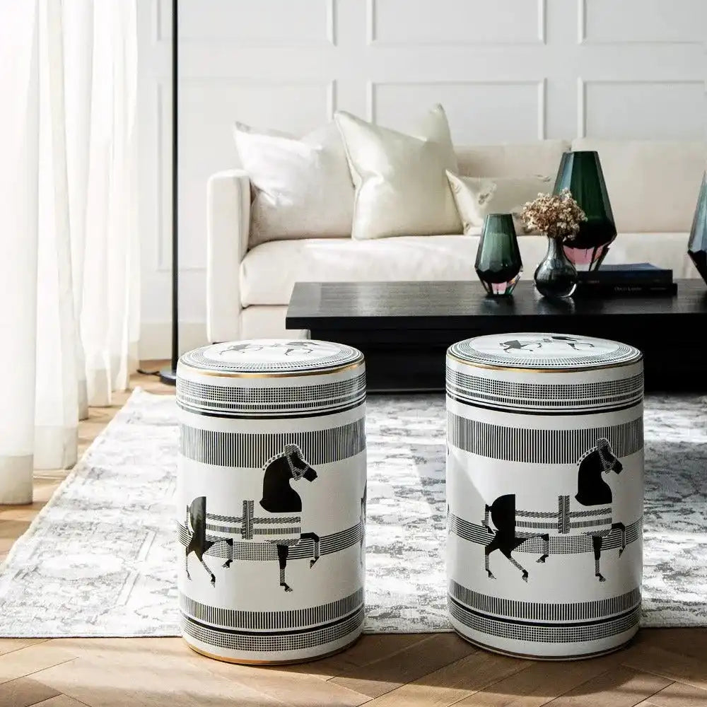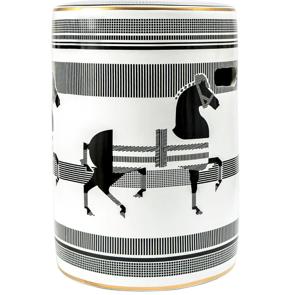 تصميم يمكن استخدامه كطاولة إضافية وإكسسوار رائع ومميز، هذا المقعد المصنوع من البورسلين هو قطعة متعددة الاستخدامات تليق بمنزلك. يأتي باللون الأسود والأبيض، وهو إضافة أنيقة لأي غرفة.