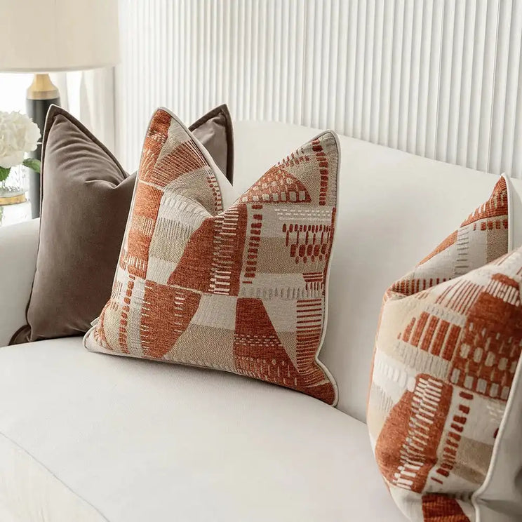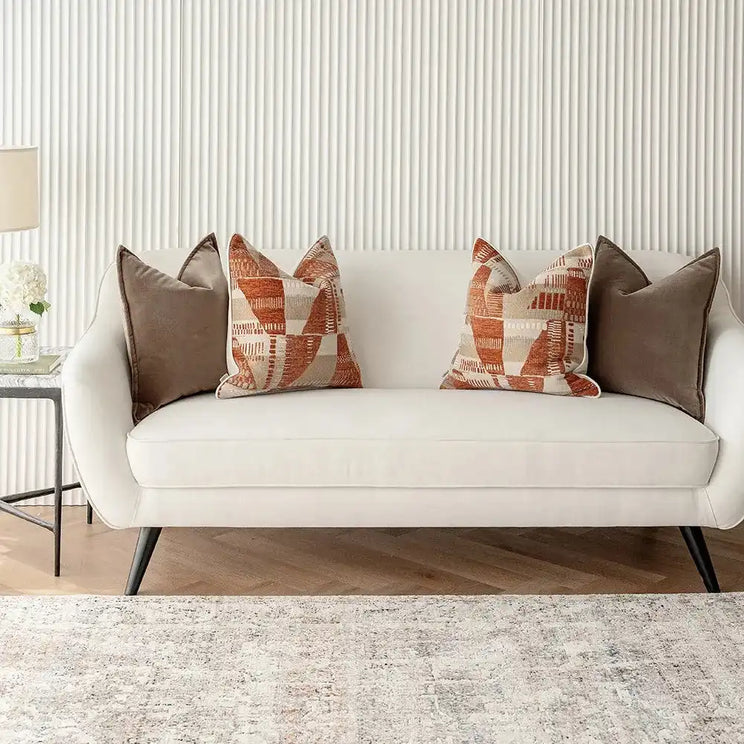 اضف لمسة بوهيمية إلى منزلك مع مجموعة أيلا التي تأتي باللون البني والبرتقالي. لقد قمنا بدمج اثنتين من وسائدنا المخملية الفاخرة مع زوج من الوسائد ذات النمط التجريدي المزخرف لإضفاء لمسة فنية.
