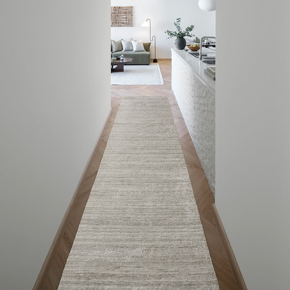 سجادة طويلة بسطح عالي الملمس باللون البيج الرمادي
