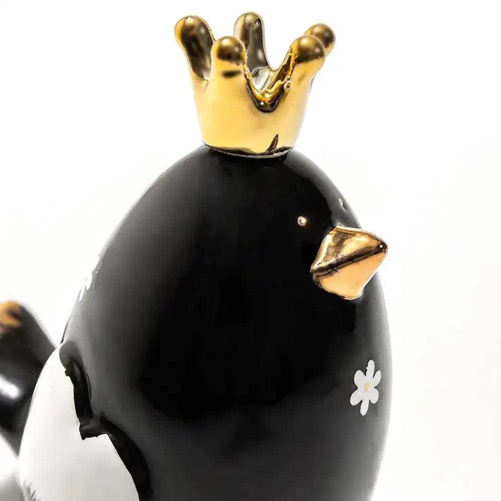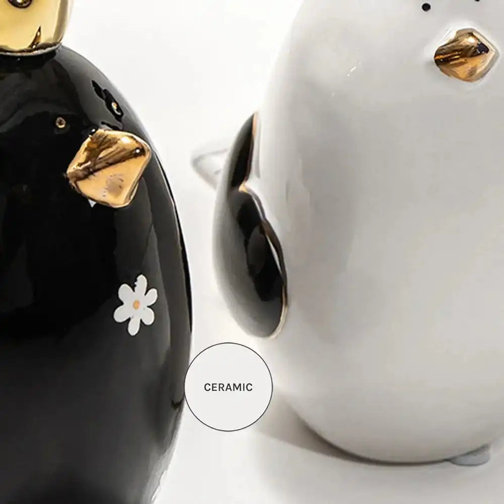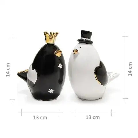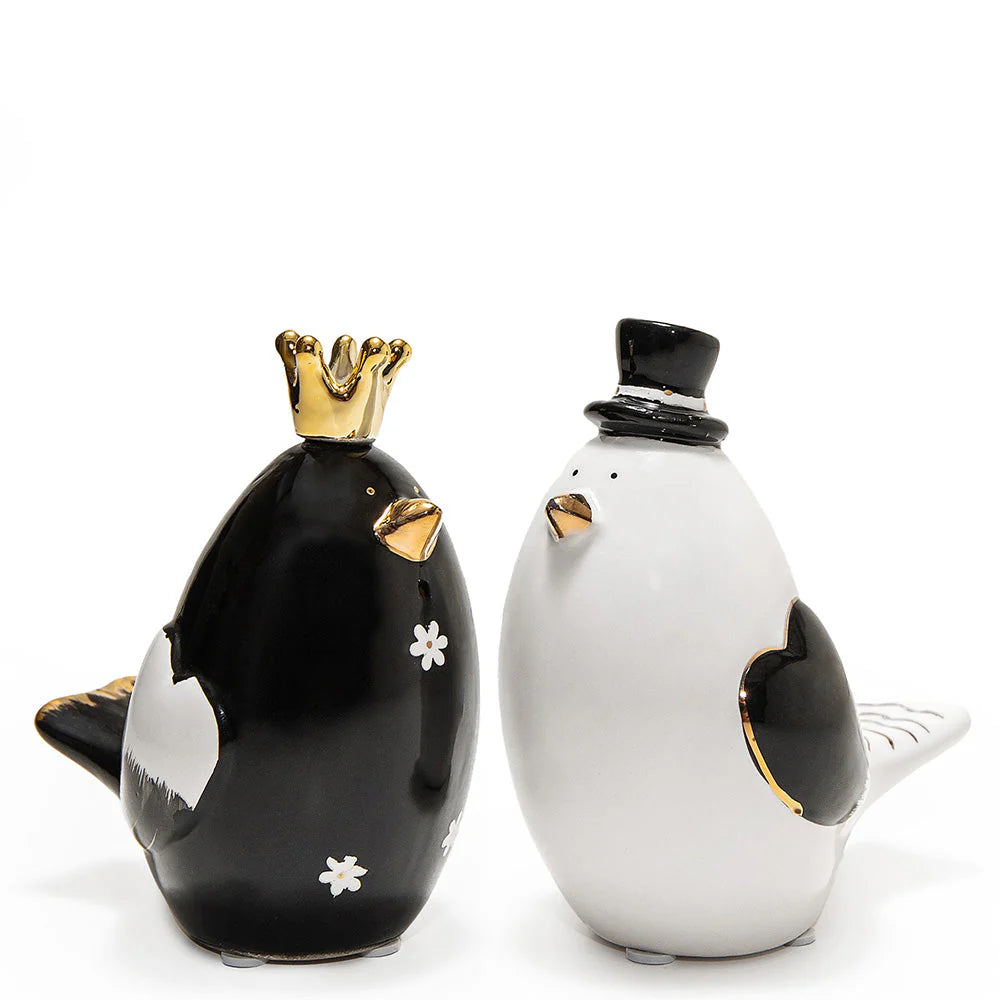 مجموعة طائري الحب السيراميكيين باللون الأسود والأبيض والذهبي. مزينة بقلوب الحب، ستكون هذه الطيور السيراميكية هدية رائعة لحفل زفاف أو خطوبة أو ذكرى سنوية.