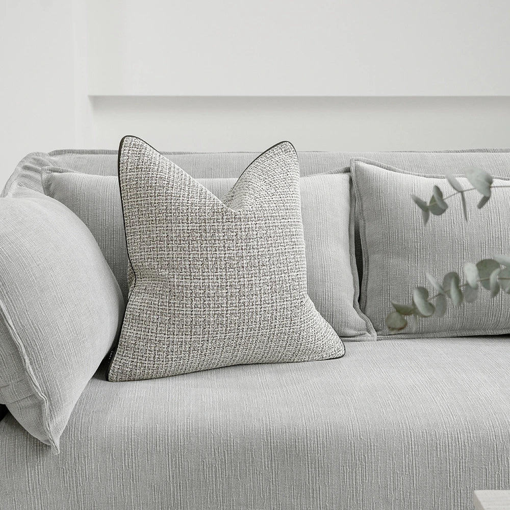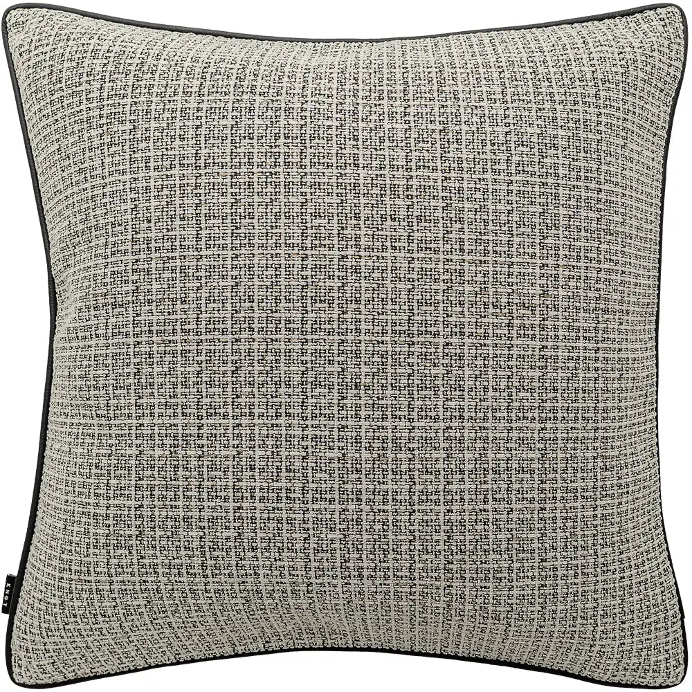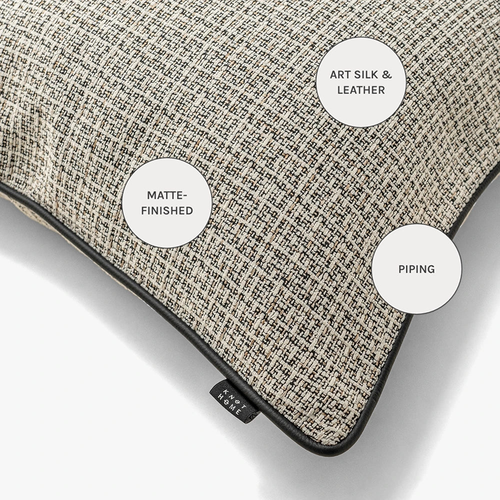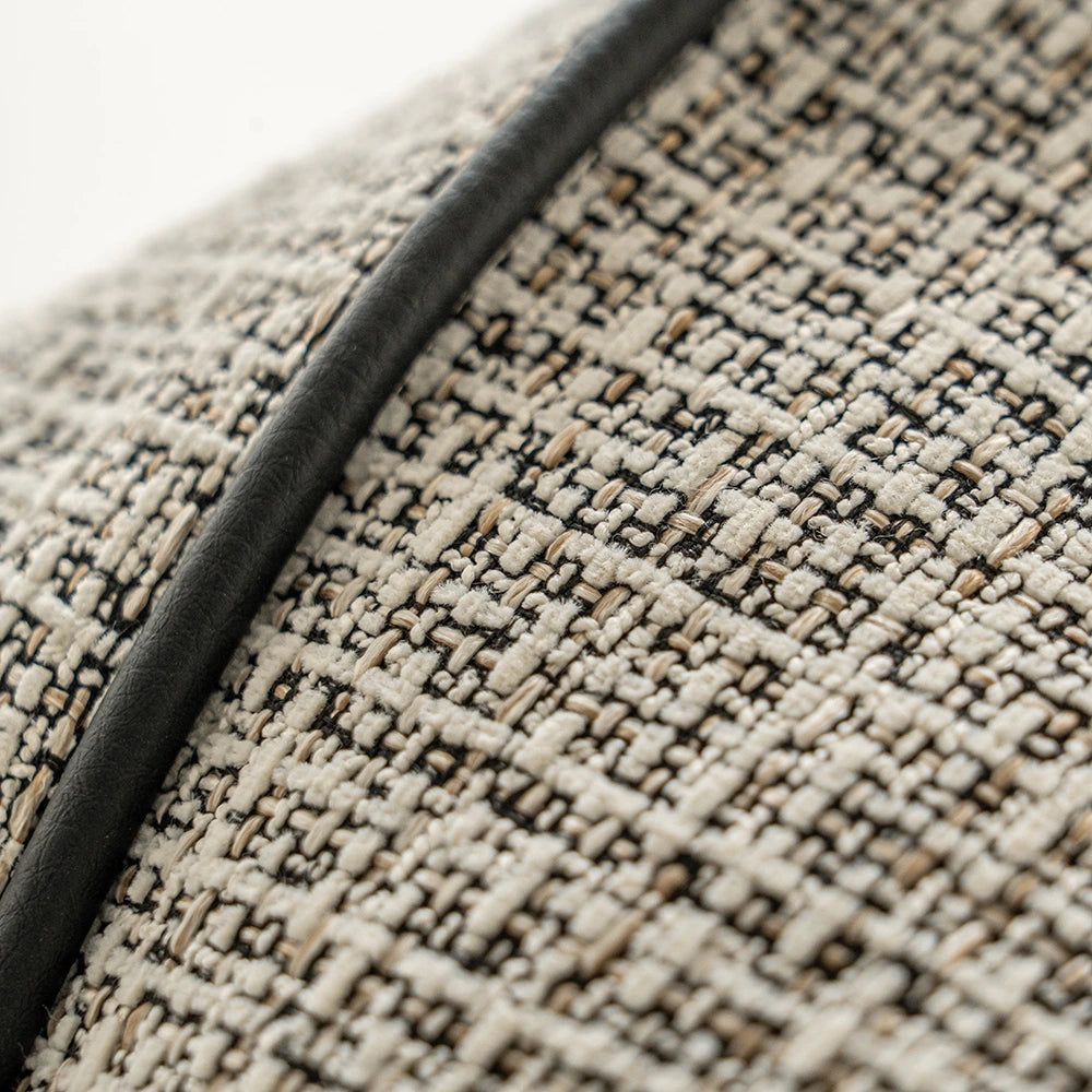 وسادة محاكة بنمط شبكي مضغوط، لمظهر مصقول وأنيق. تضيف الحواف الجلدية لمسة منظمة ومتزنة، توازن بين النعومة والرقي بشكل راقي.