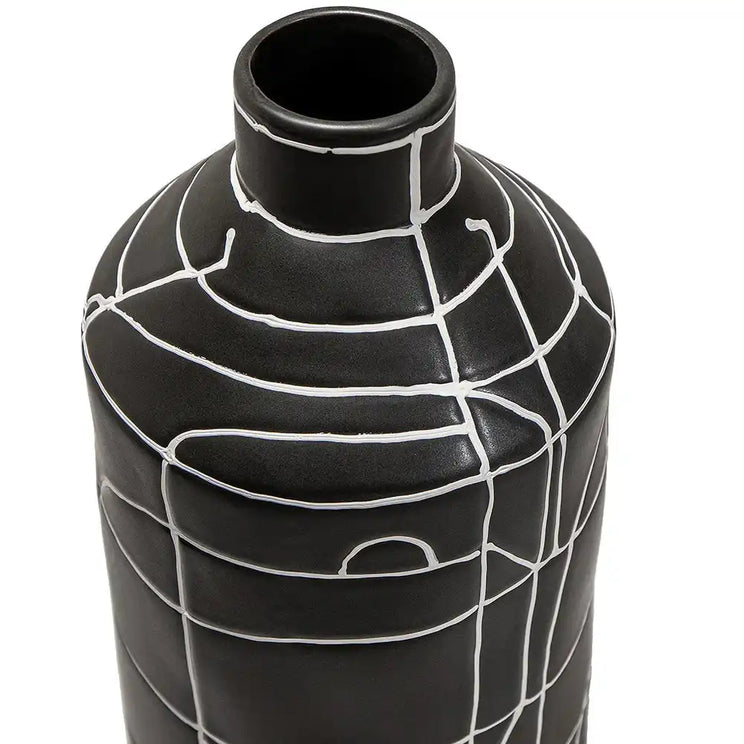 التصميم: مزهرية بفم ضيق مزينة بنمط خطوط تجريدي بالكامل