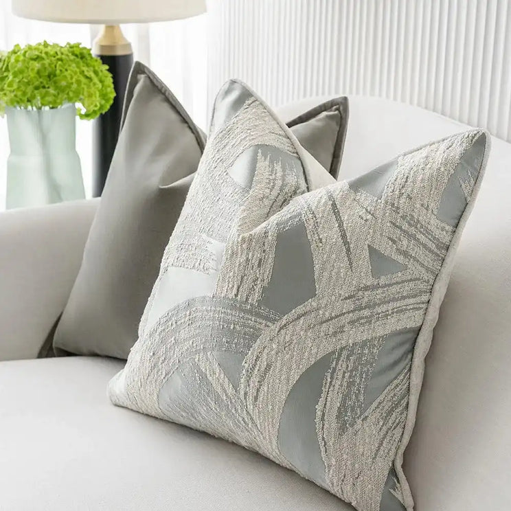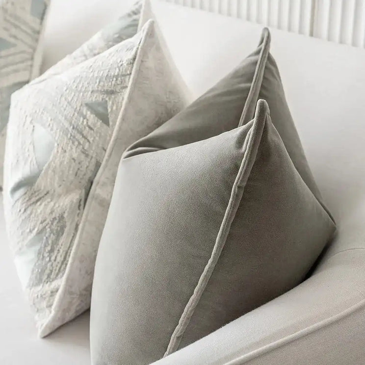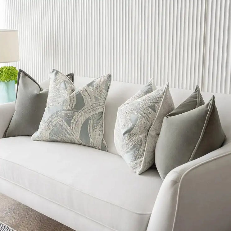 التصميم: وسادتان بنمط دوامة ووسادتان مخمليتان باللون الرمادي