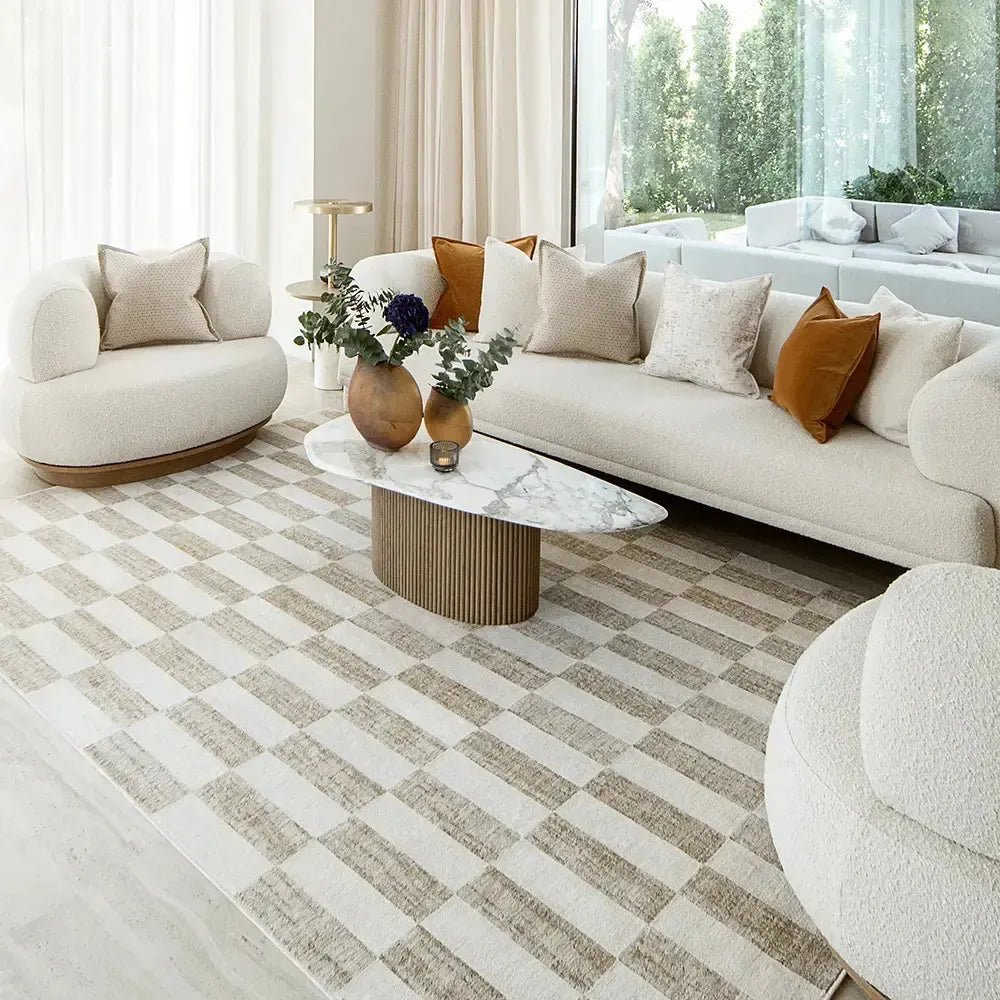 بدرجات محايدة من اللون البيج، هذا السجاد متعدد الاستخدامات حقًا.