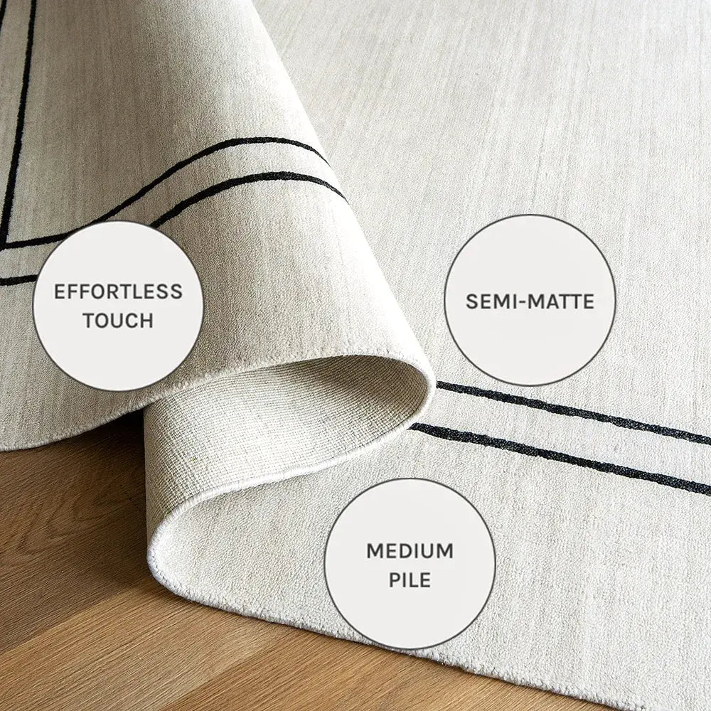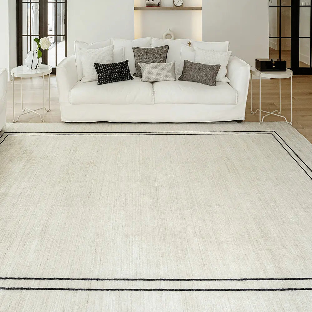 سجادة كولين بيانكا لدينا تأتي بتصميم عصري وبسيط باللون العاجي والأسود.