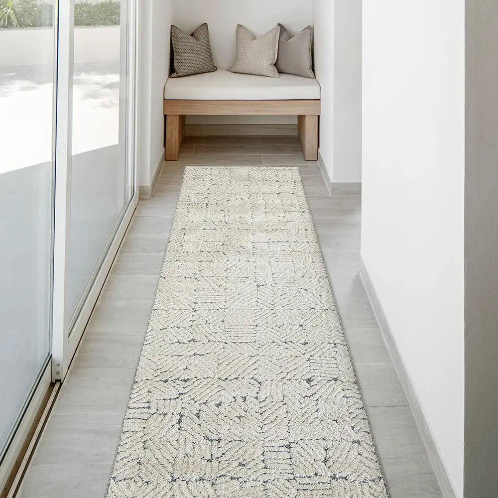سجادة بتصميم هندسي مصنوعة من مادة البولي بروبيلين فائقة النعومة تمنحك شعورًا باراحة.