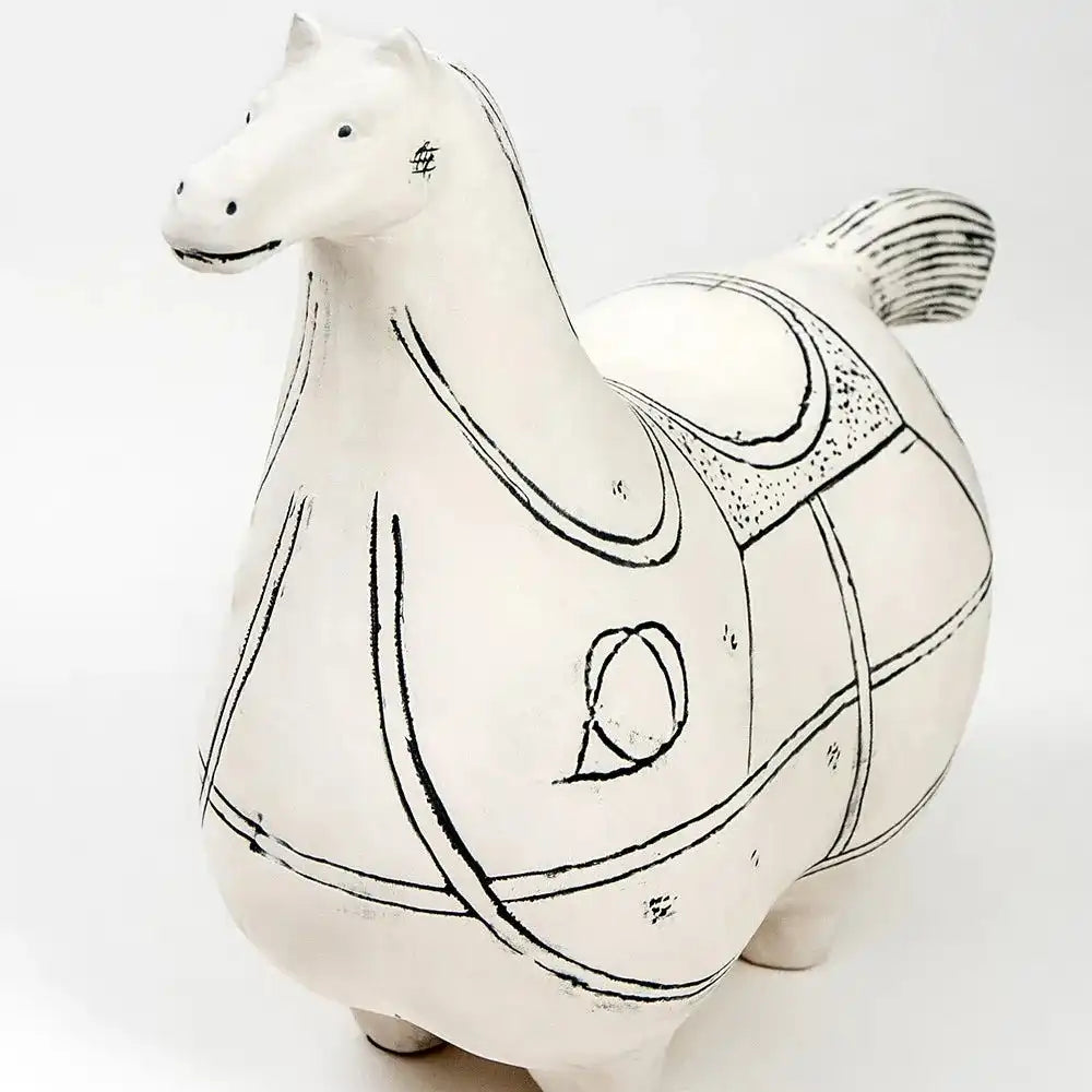 التصميم: تصميم على شكل حصان من السيراميك الأبيض مع تفاصيل سوداء