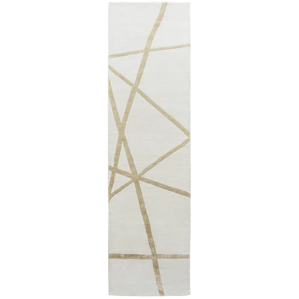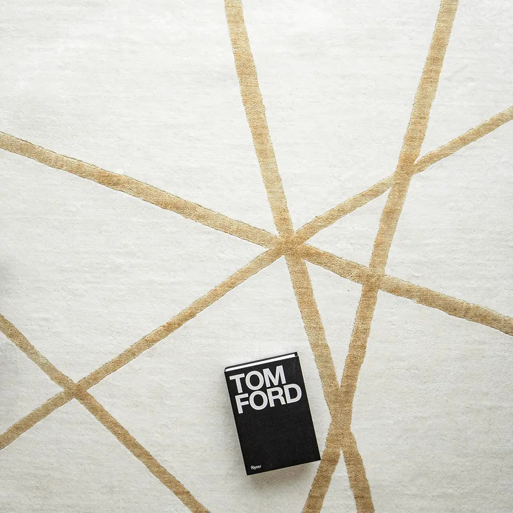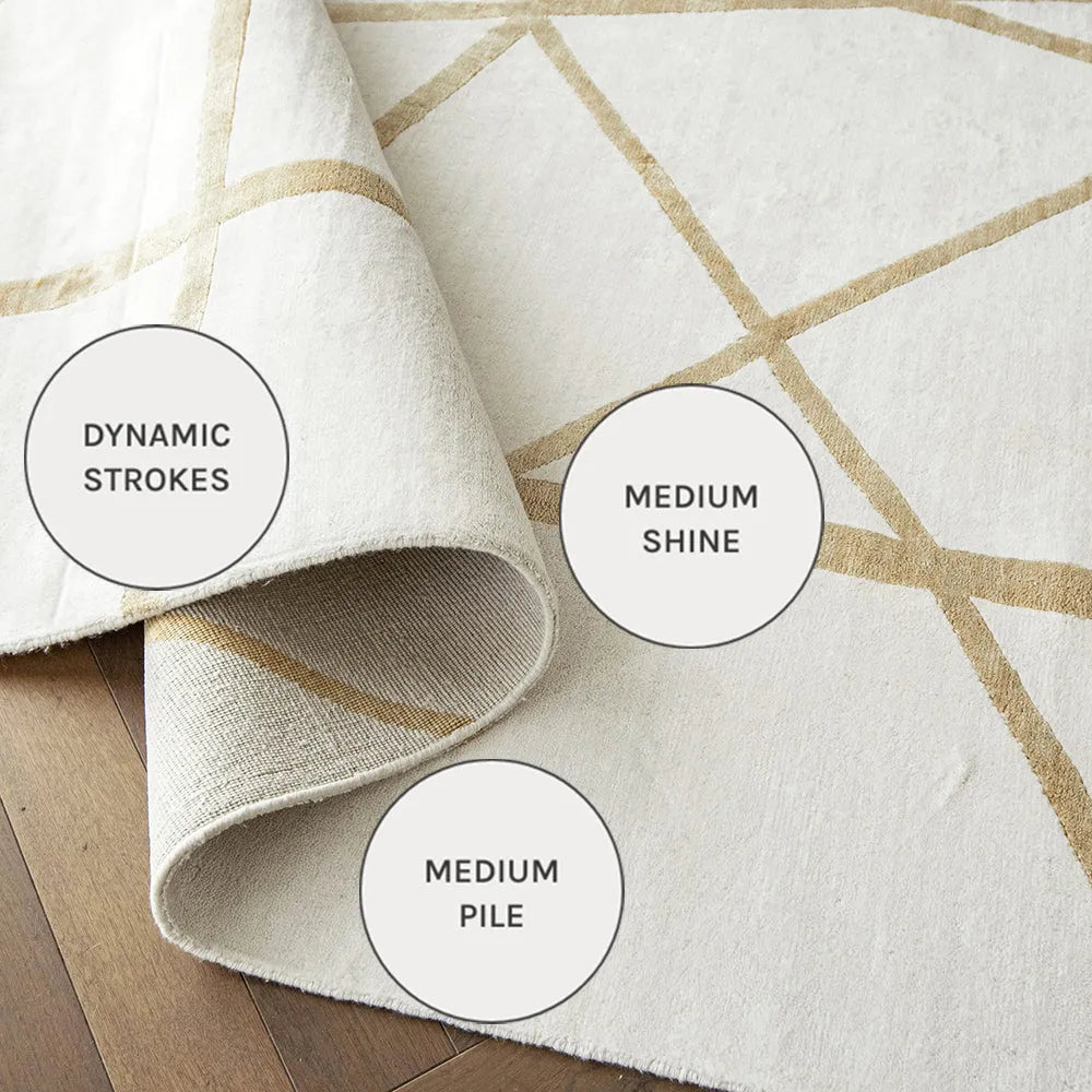 سجادة باللون الأوف وايت والذهبي وتصميم عصري بسيط تليق بذوقك الرفيع.