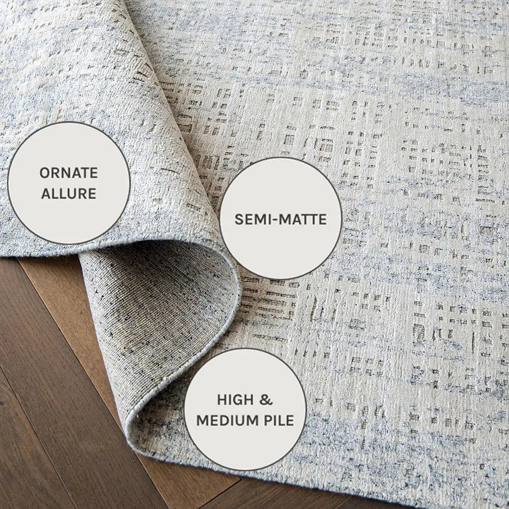 مصنوعة من الصوف الممشط والحرير، وقد تم صنع هذه السجادة يدويًا للمزيد من الفخامة.