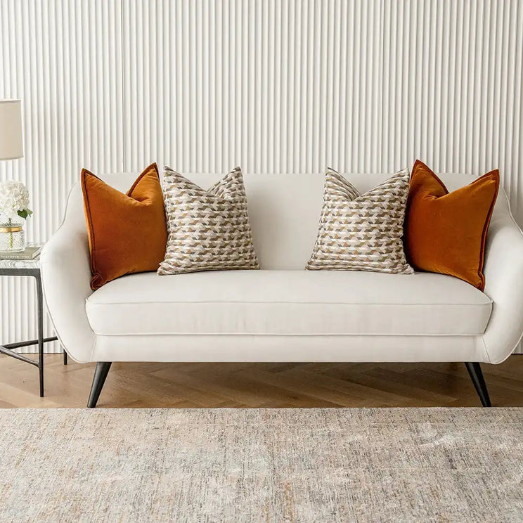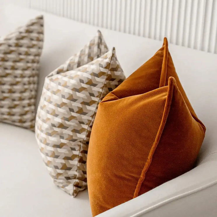 التصميم: وسادتان من المخمل الصدأ ووسادتان بتصميم فني
