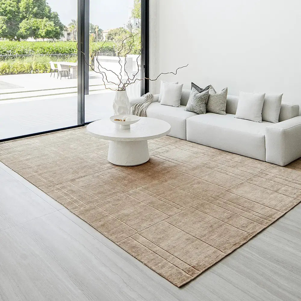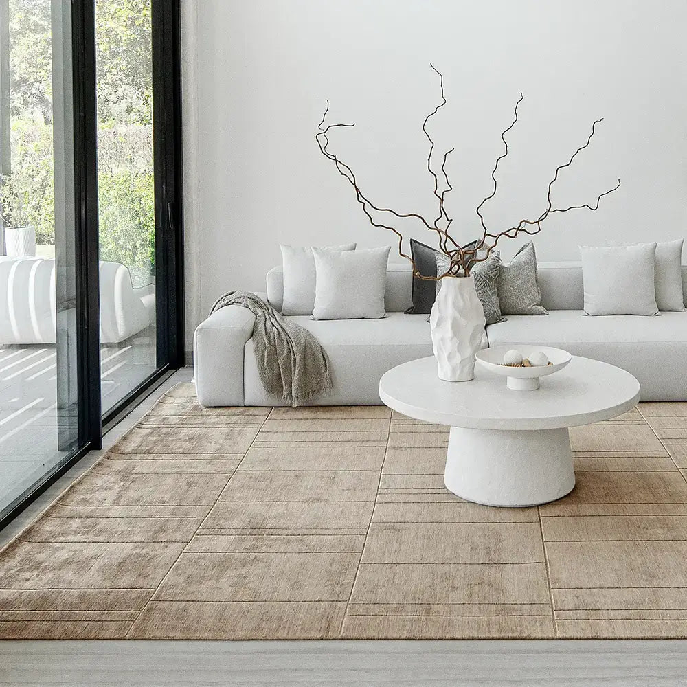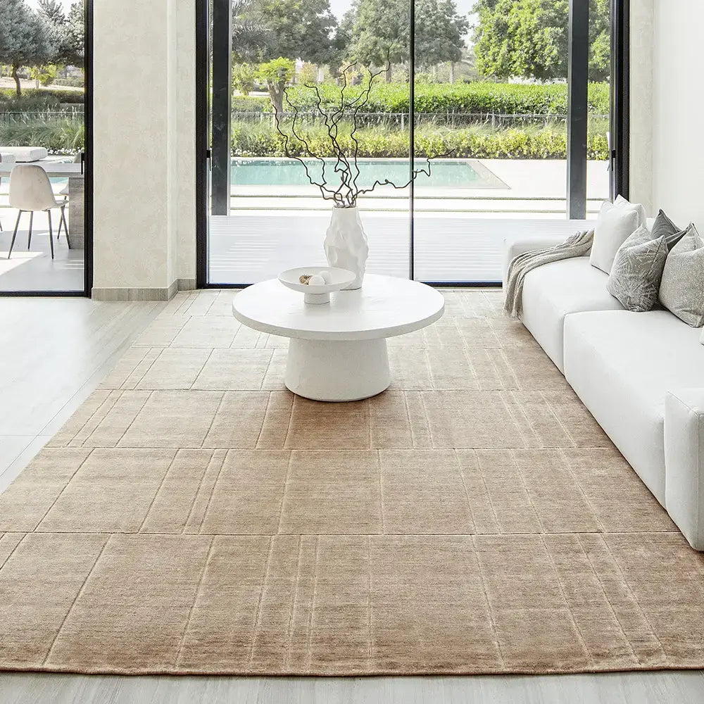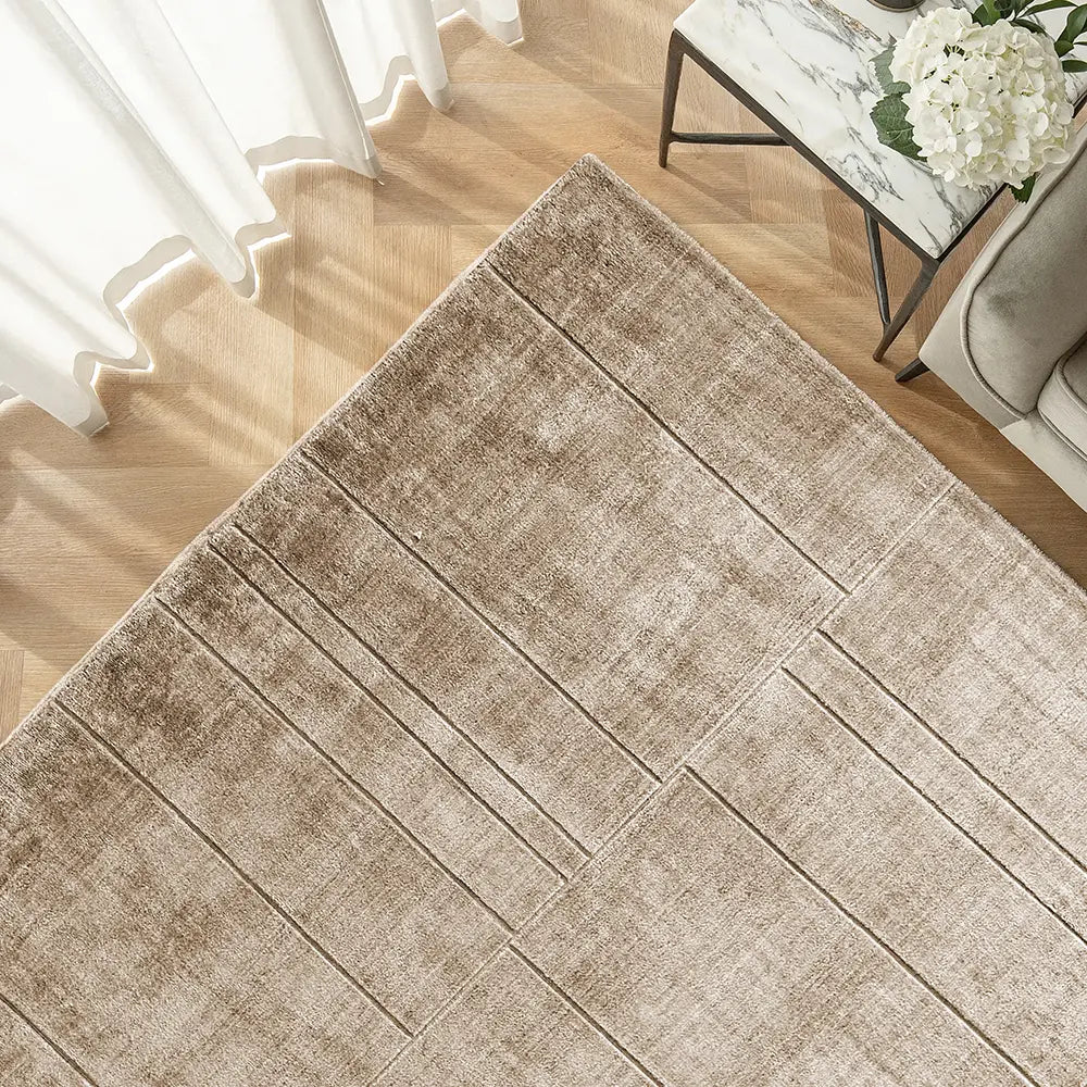 سجادة مصنوعة من الحرير الصناعي بلمعة قليلة، مصنوعة يدويًا لتمنحك الشعور بالفخامة.