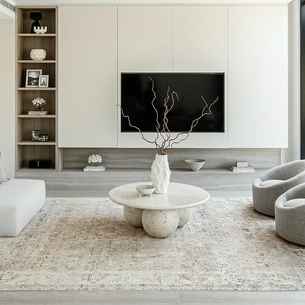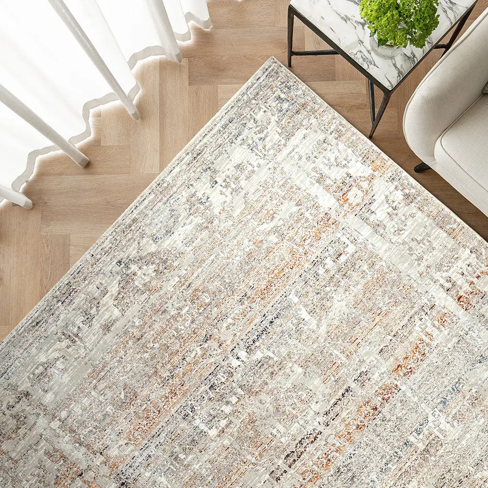 سجادة باللون البيج والرمادي من تشكيلة إيثان تأتي بتفاصيل باهتة لتعطي مظهر عصري في منزلك.