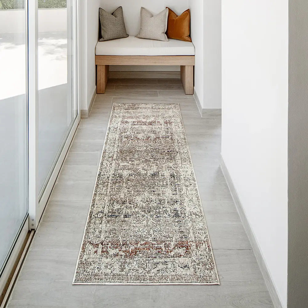 سجادة باللون البيج والرمادي من تشكيلة إيثان تأتي بتفاصيل باهتة لتعطي مظهر عصري في منزلك.