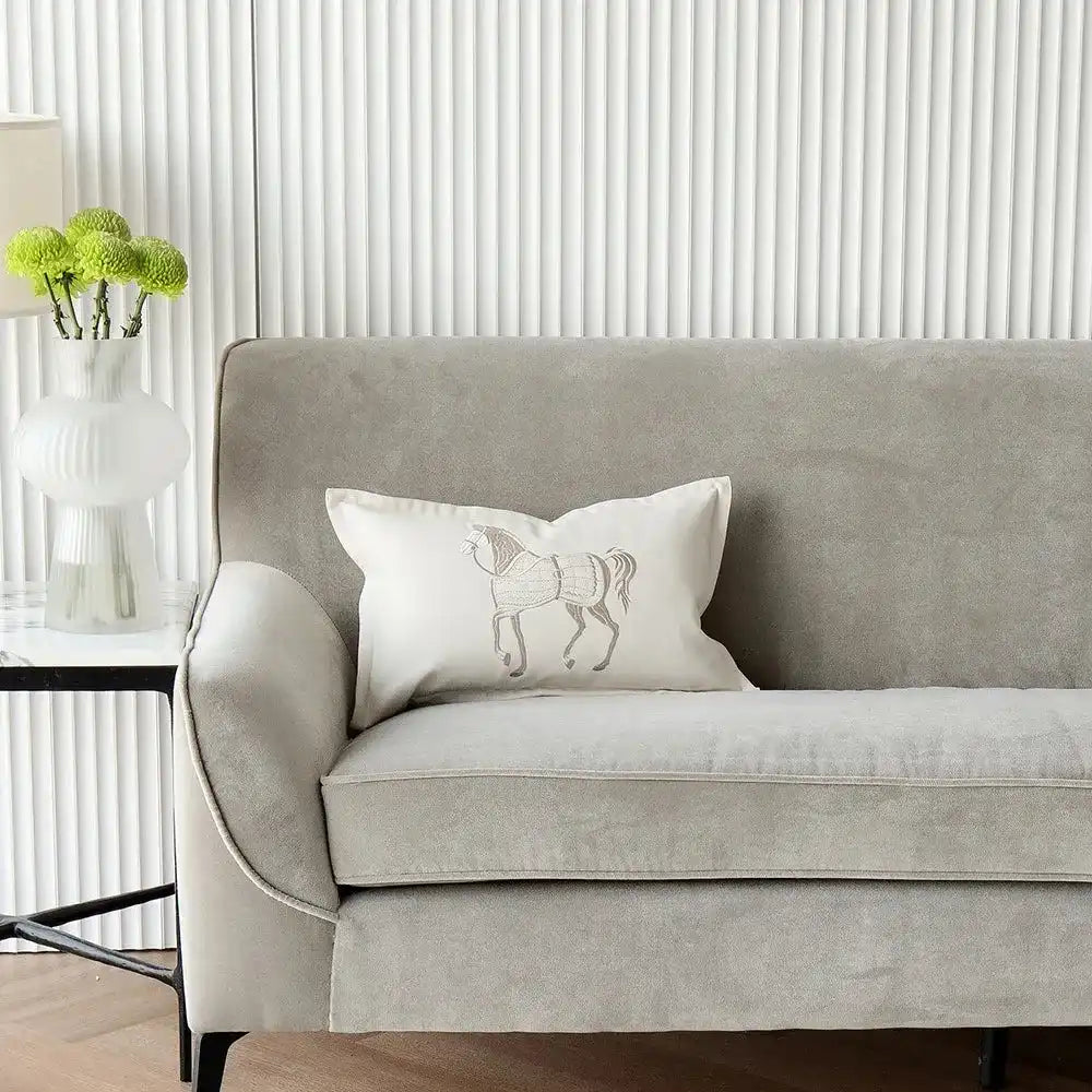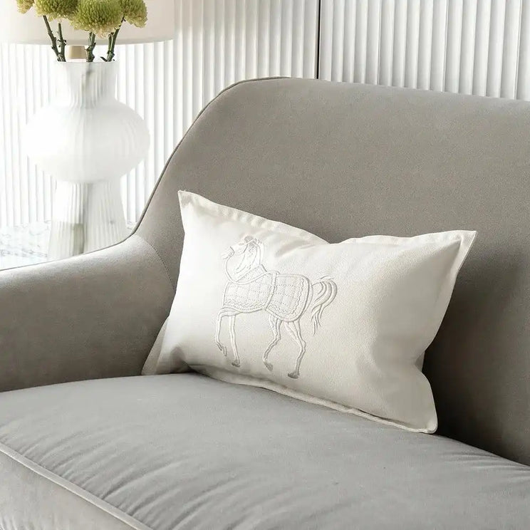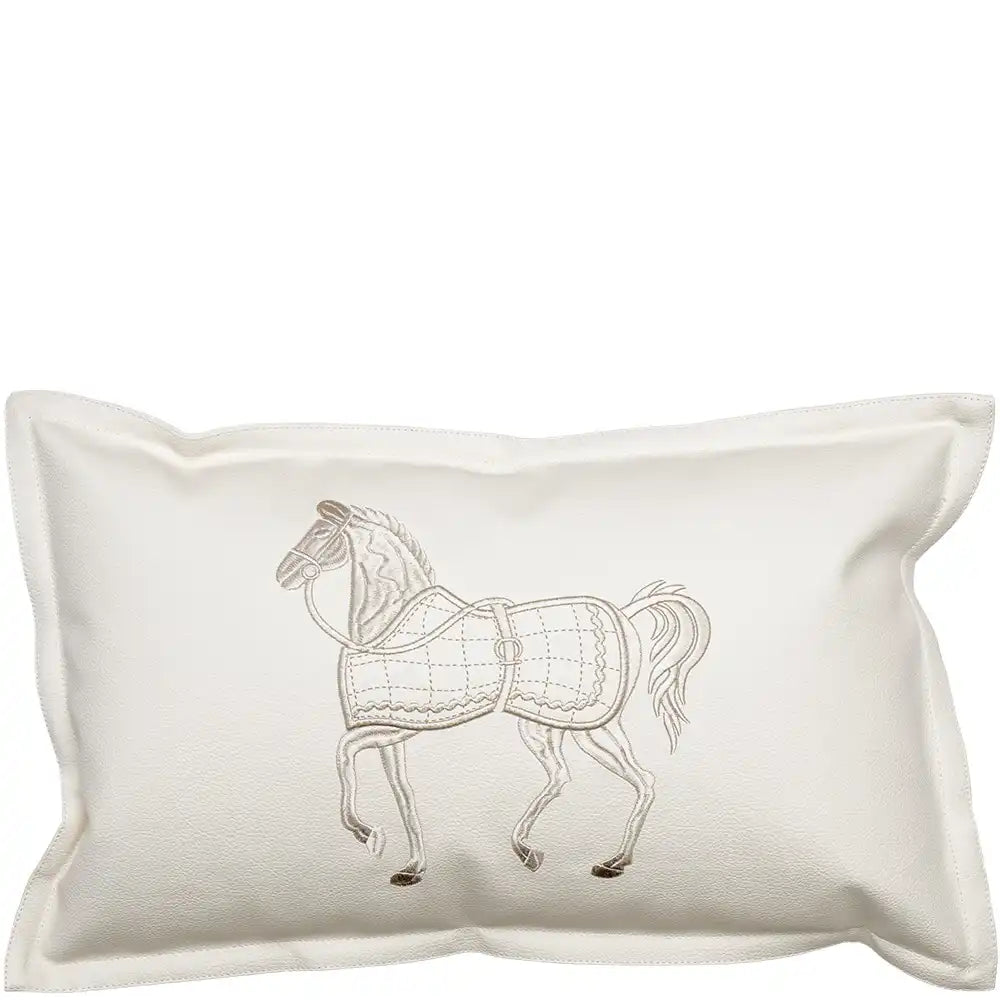 وسادة تزيينية بلون بيج مائل للأوف وايت مطرزة بتصميم حصان
