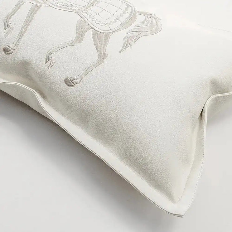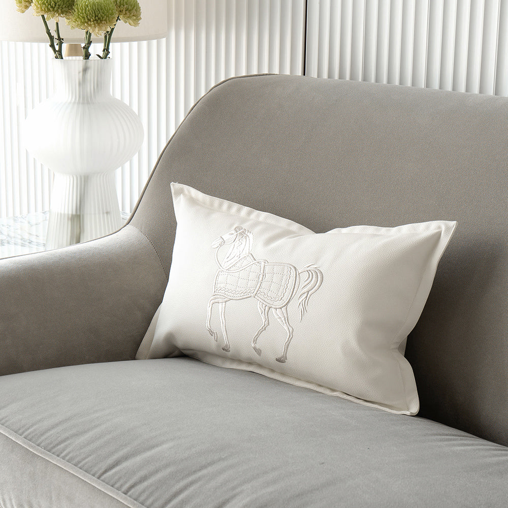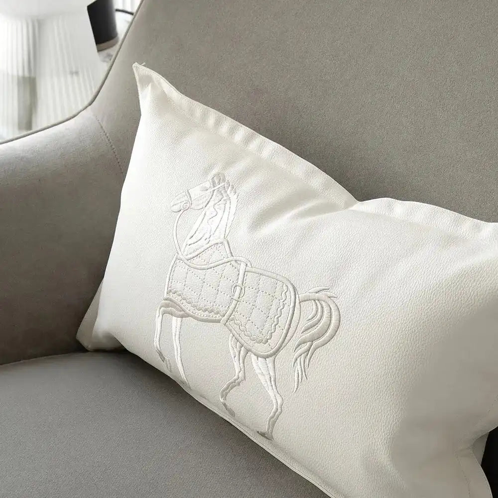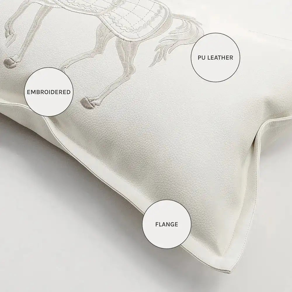 هذه الوسادة مزينة بتطريز الحصان ومصنوعة من جلد البولي يوريثين الناعم لإضفاء لمسة عصرية. يعرض شكل حصان منمق في المنتصف لإضافة مظهر يخطف أنظار ضيوفك في جميع الأوقات.