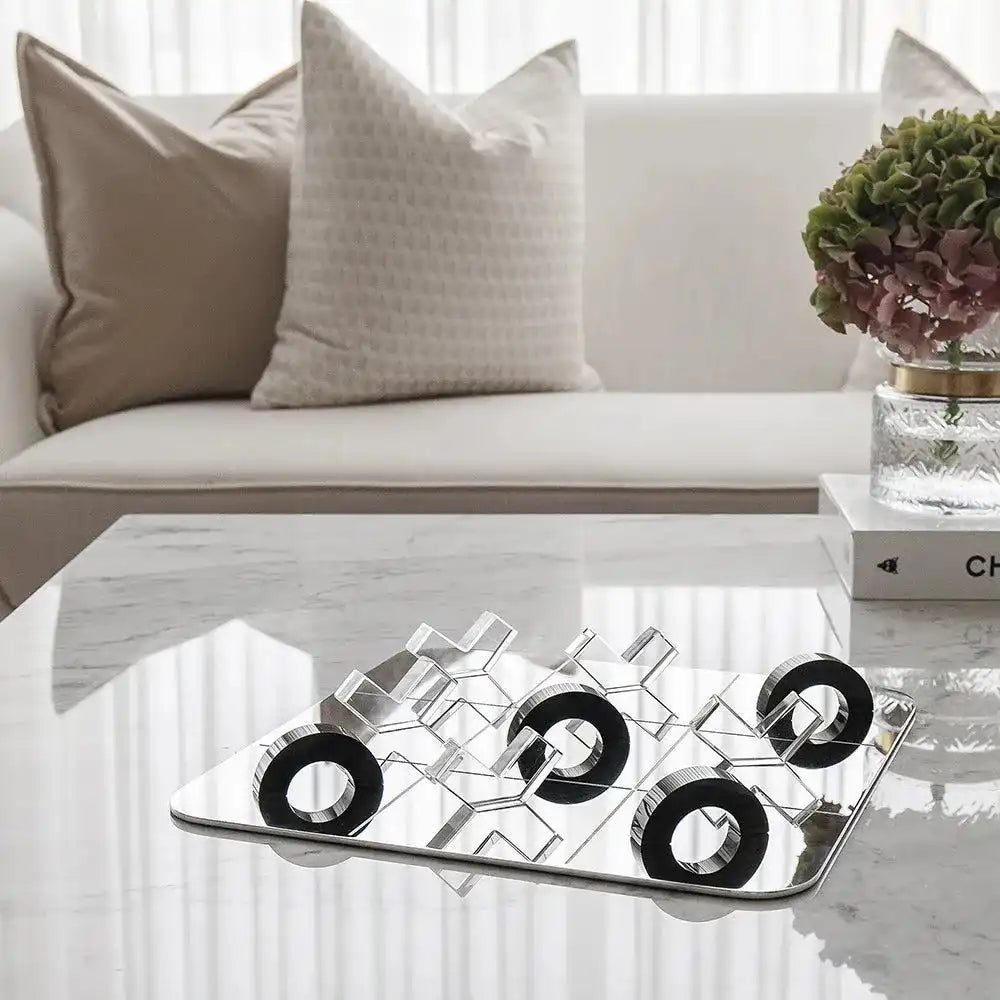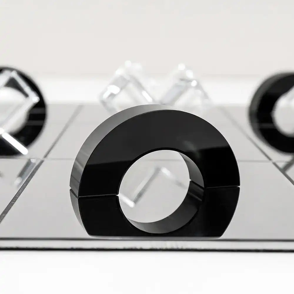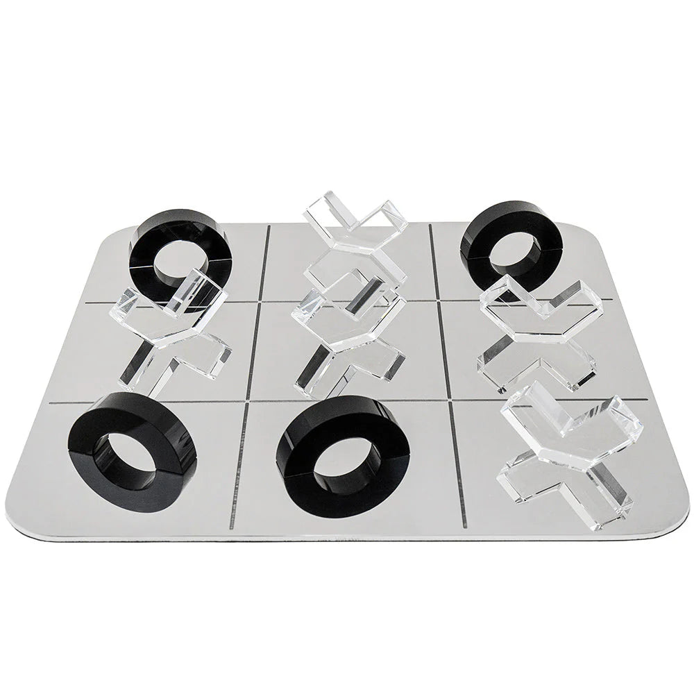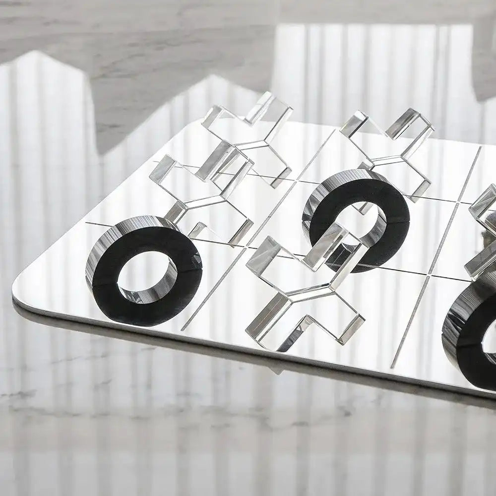 استمتع بلوحة لعب فولاذية مع مع أشكال O وشكل X شفافة بشكل مختلف. تأتي هذه اللوحة من الفولاذ المقاوم للصدأ، مع قطع مصنوعة من الزجاج البلوري. لتكون هدية رائعة.