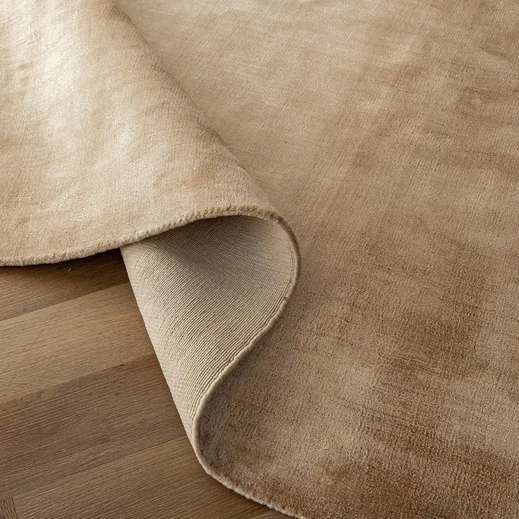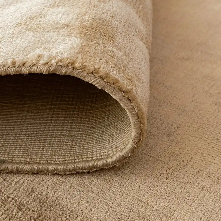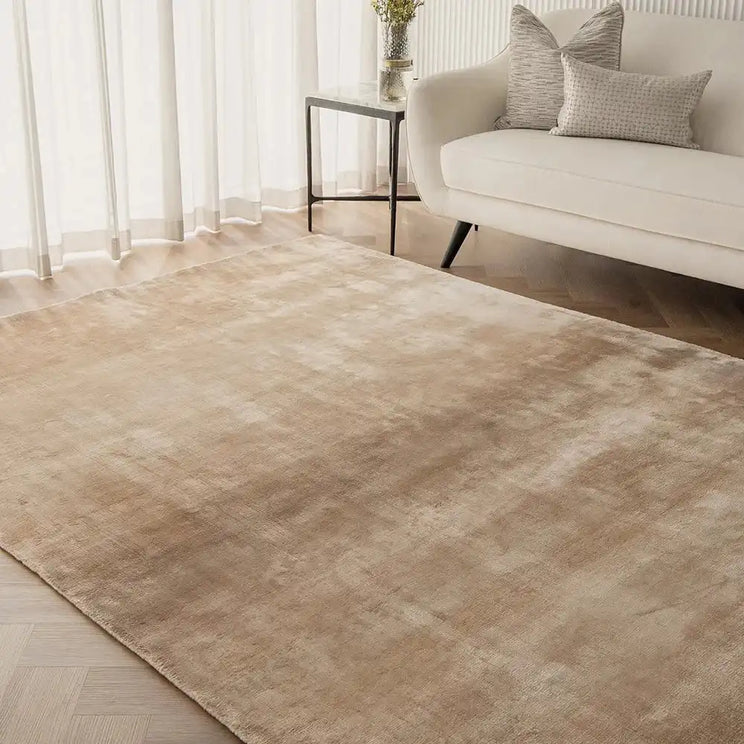سجادة باللون البيج الدافيء والذهبي وتصميم أومبريه تعطي مظهر لامع في غرفة معيشتك.