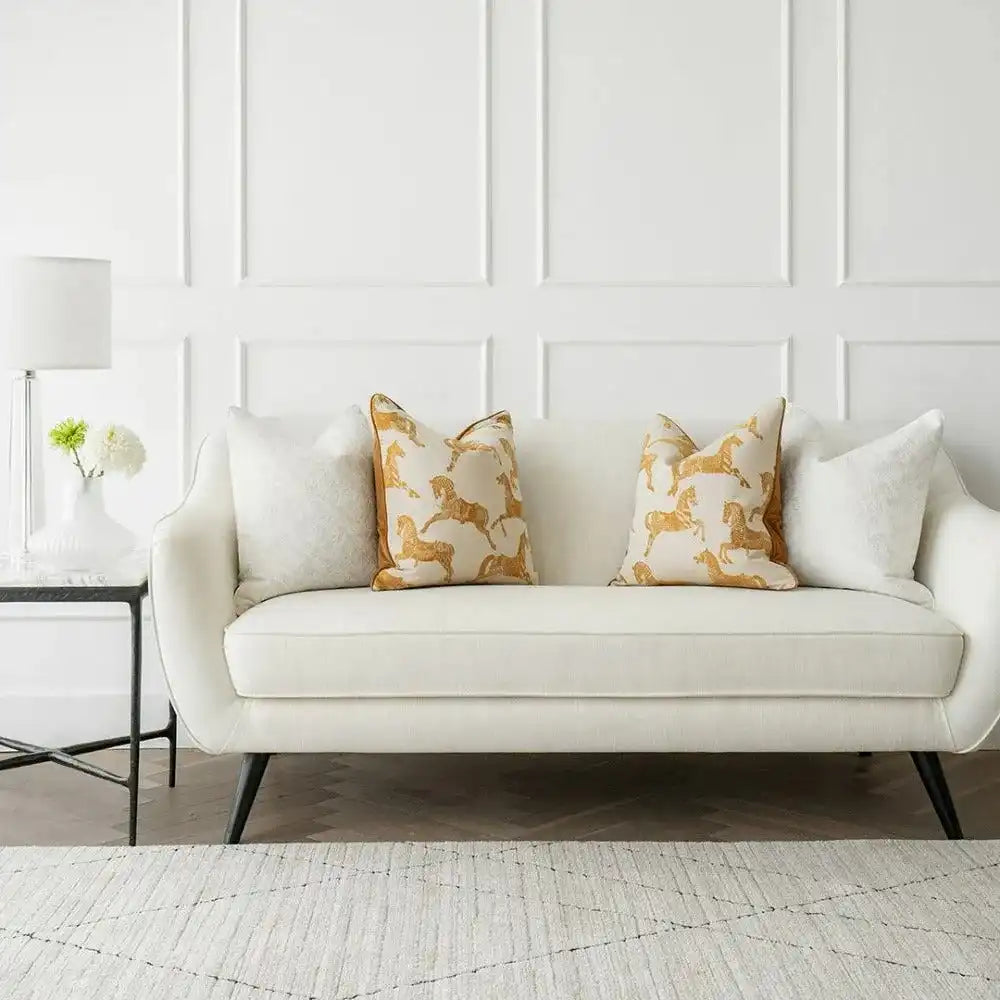 اضف البهجة إلى غرفة معيشتك مع مجموعة الونا التي تأتي بوسادتان باللون الأبيض مع تفاصيل بنمط متقاطع مع وسادتان بتفاصيل الأحصنة الراقصة من الأمام.