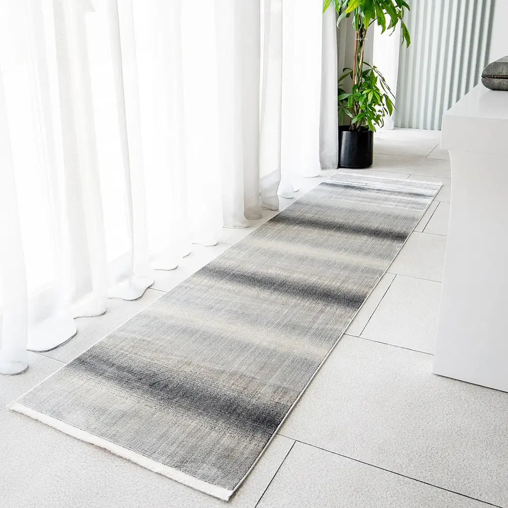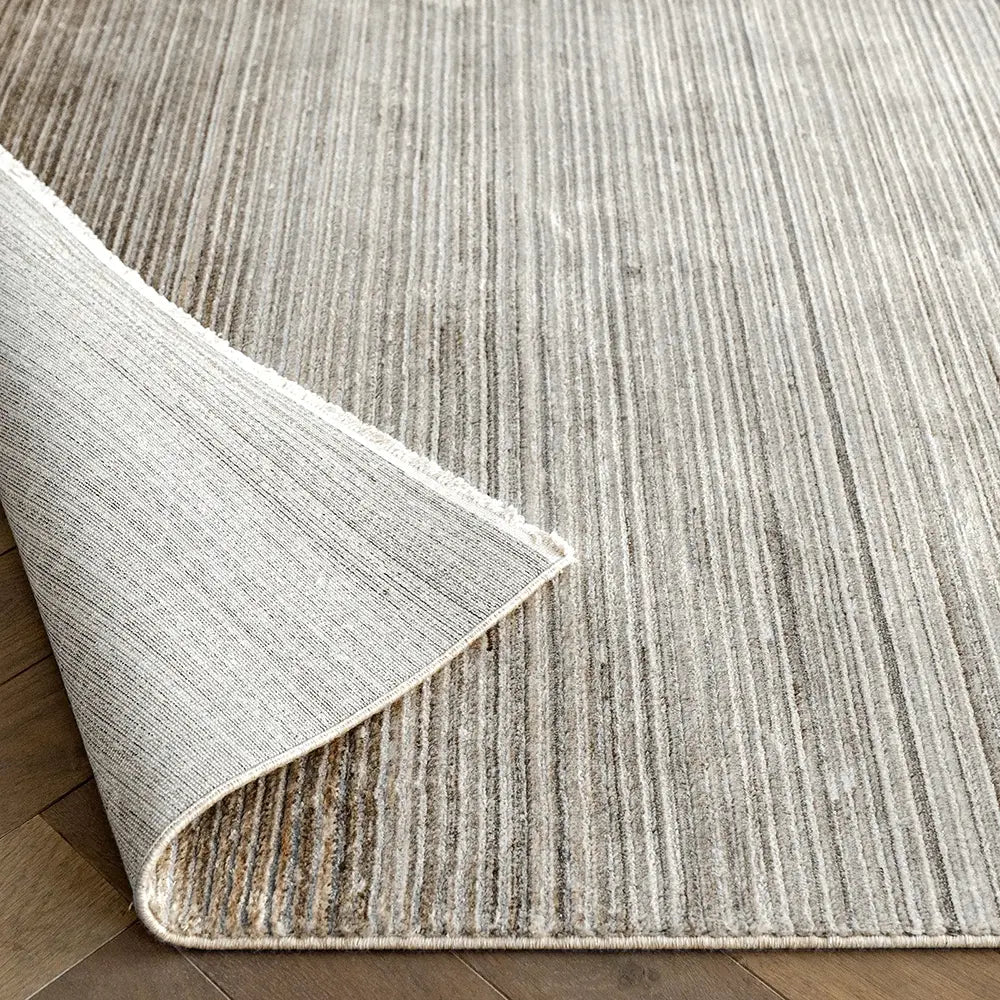 سجادة تأتي بخطوط مميزة ومظهر أنيق باللون الرمادي والبيج.