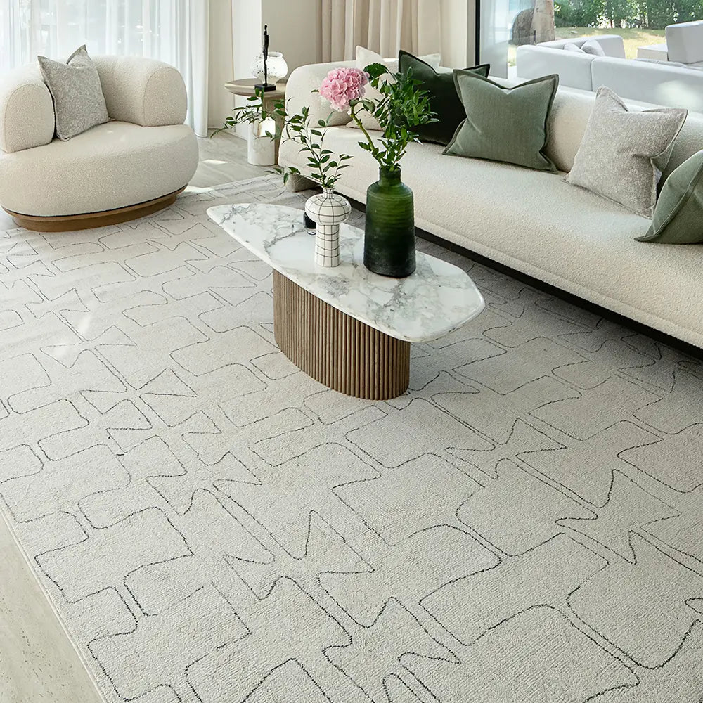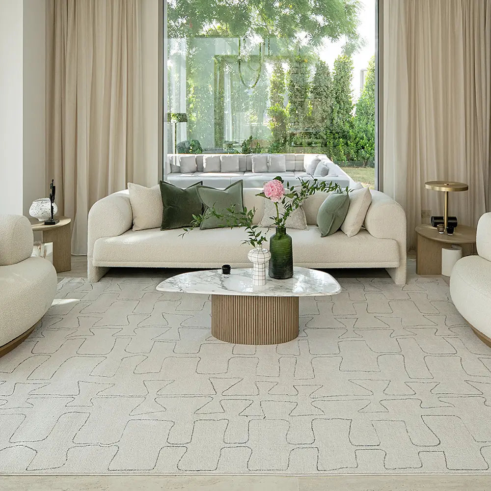 هل ترغب في إضفاء لمسة عصرية على ديكور منزلك؟ تعد هذه السجادة باالون العاجي هو الخيار المثالي. مع تصميم الأقواس المرسوم بلون الفحم، ستضيف هذه السجادة المعاصرة عمقًا وملمسًا على محيطك.
