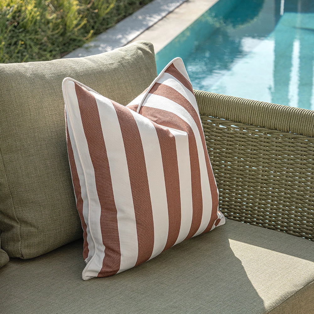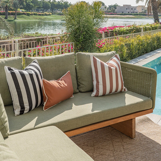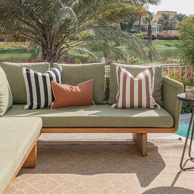 وسائد محشوة بالألياف ومقاومة للعوامل الجوية، تمنحك راحة تدوم طويلاً، وتعزز من أناقة المساحات الخارجية.